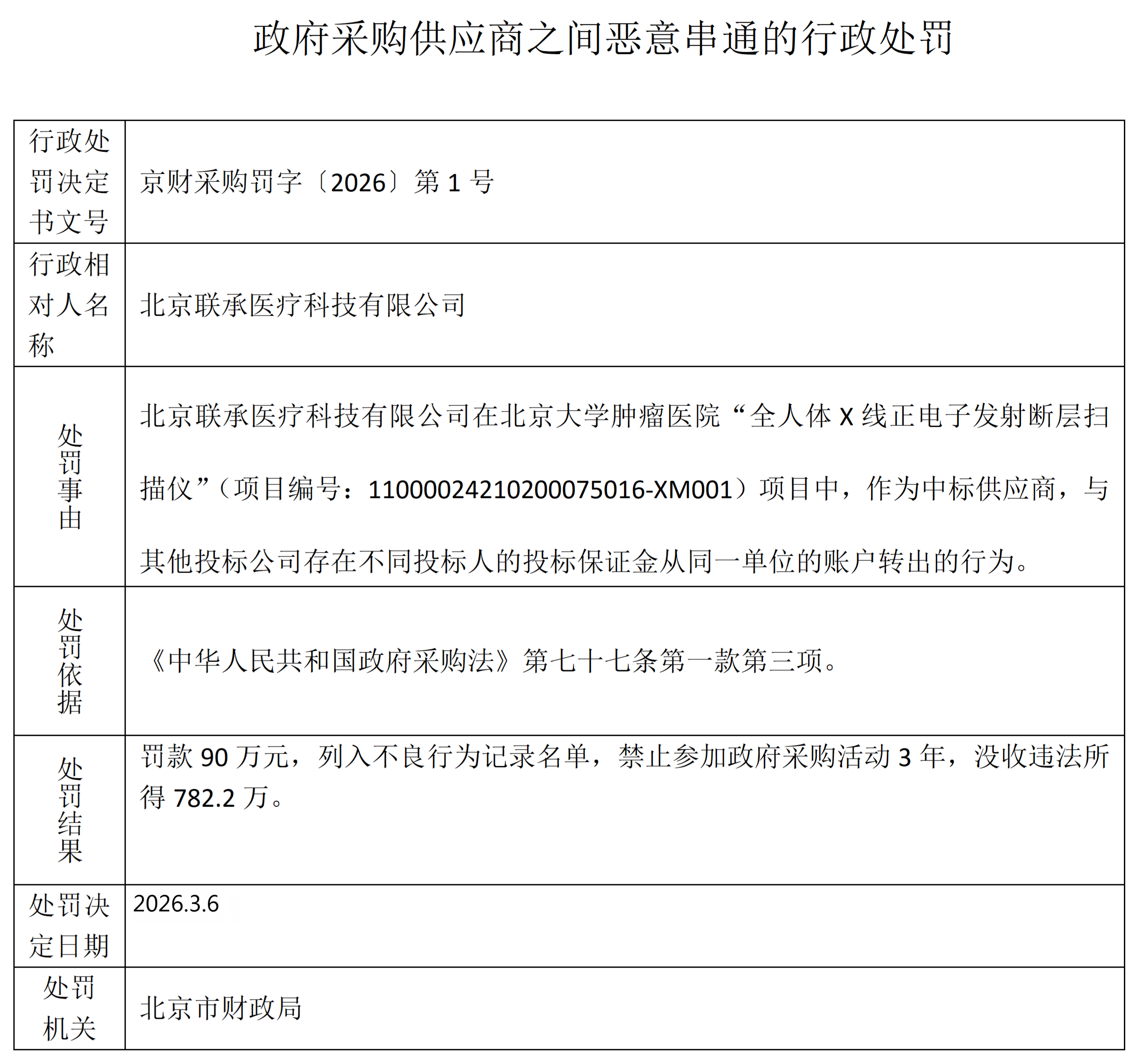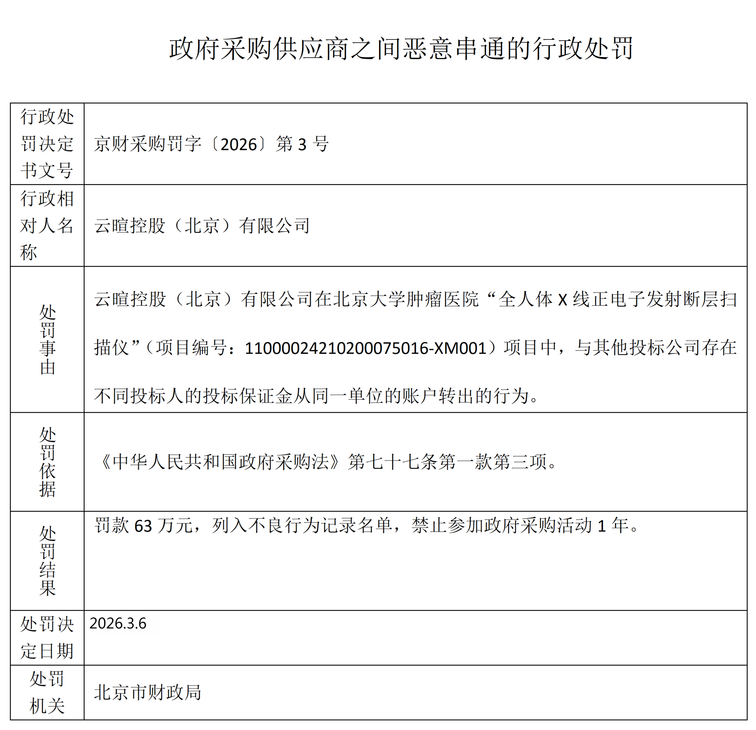 北京市财政局关于对北京联承医疗科技有限公司、北京爱润源科技发展有限公司、云暄控股(北京)有限公司的行政处罚决定书