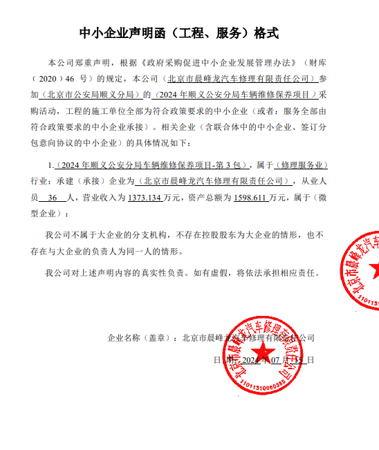 本项目因中标供应商北京顺利华新能源汽车技术有限公司,统一信用代码91110113733469332T ,放弃中标,根据《中华人民共和国政府采购法实施条例》第四十九条以及招标文件第25.2条款相关规定,推荐排名第二的候选人北京市晨峰龙汽车修理有限责任公司,统一信用代码911101131025582590,为中标供应商,中标金额总价:257888.00元(大写:人民币贰拾伍万柒仟捌佰捌拾捌元整)。