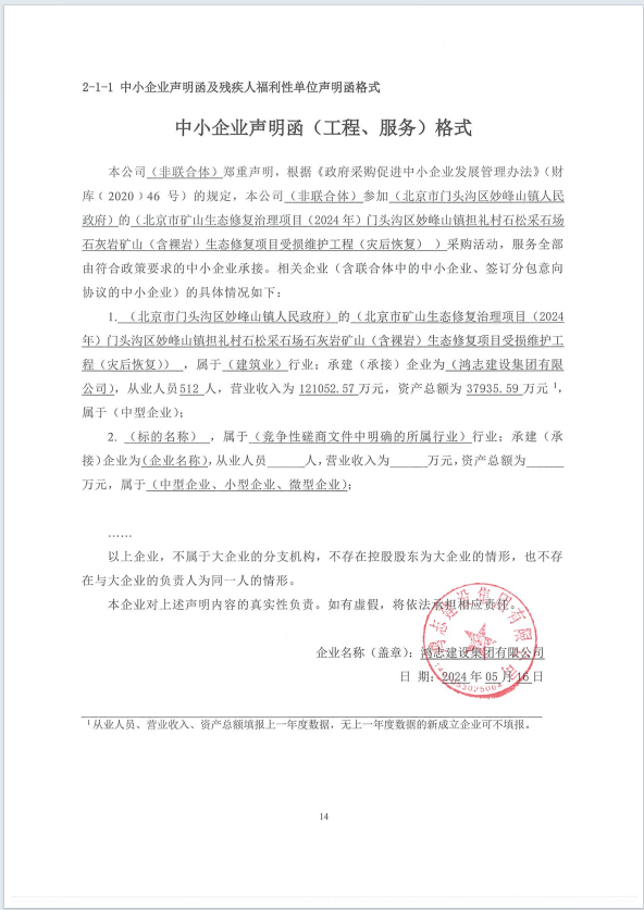 1.原北京市矿山生态修复治理项目(2024年)门头沟区妙峰山镇担礼村石松采石场石灰岩矿山(含裸岩)生态修复项目受损维护工程(灾后恢复)中标成交供应商中色资源环境工程股份有限公司自愿放弃中标资格,现顺延第二中标候选人鸿志建设集团有限公司为本项目中标人。