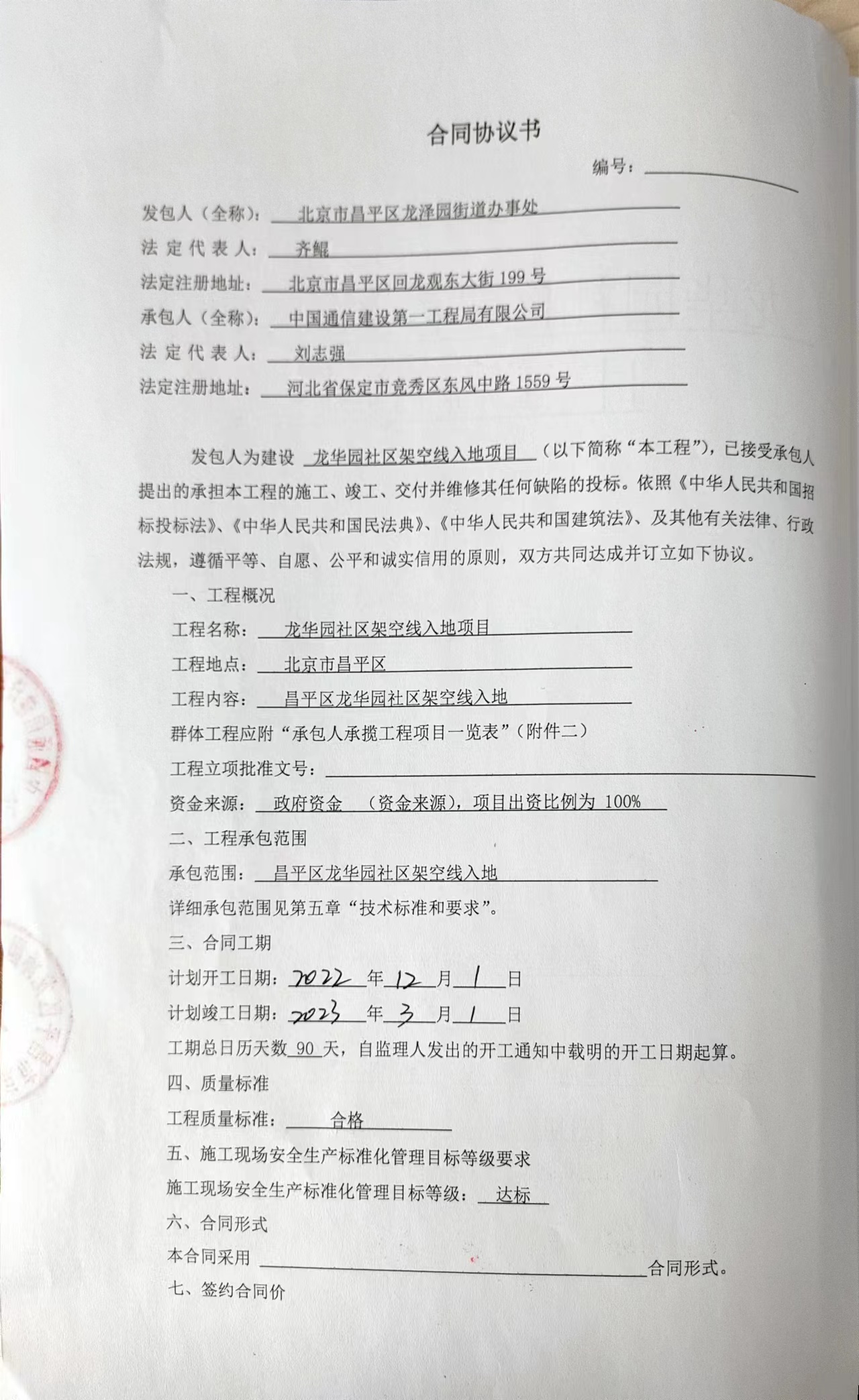供应商(乙方): 中国通信建设第一工程局有限公司