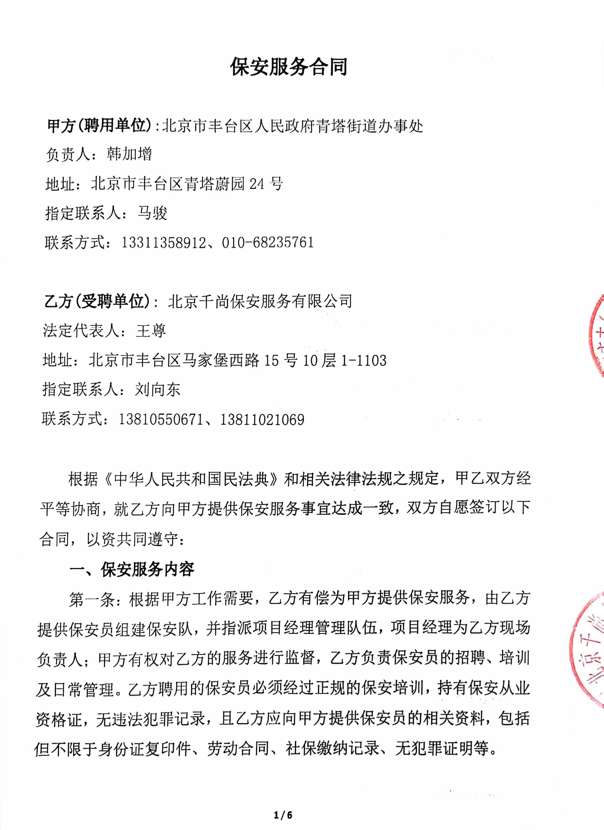 采购人(甲方): 北京市丰台区人民政府青塔街道办事处(本级)