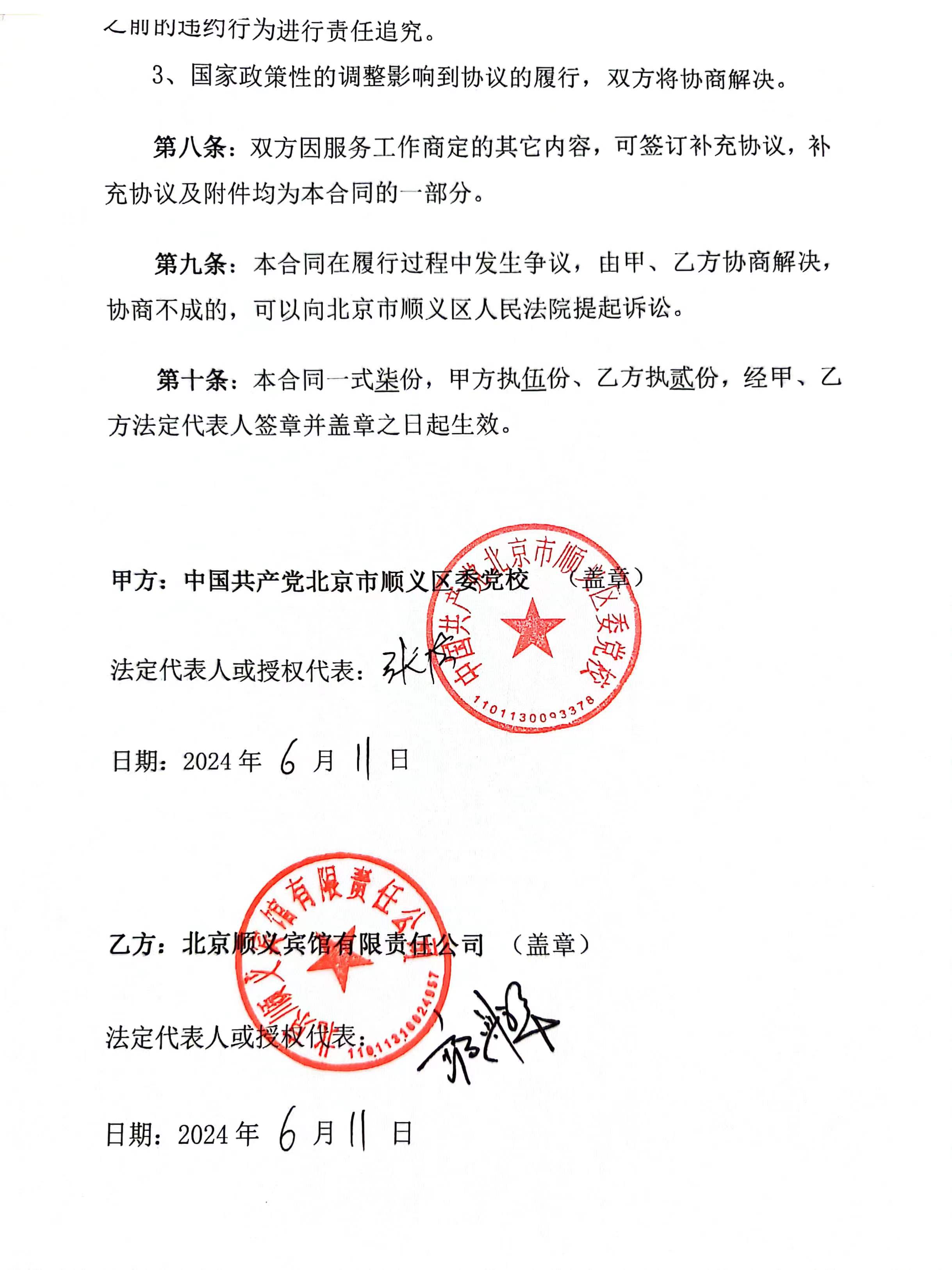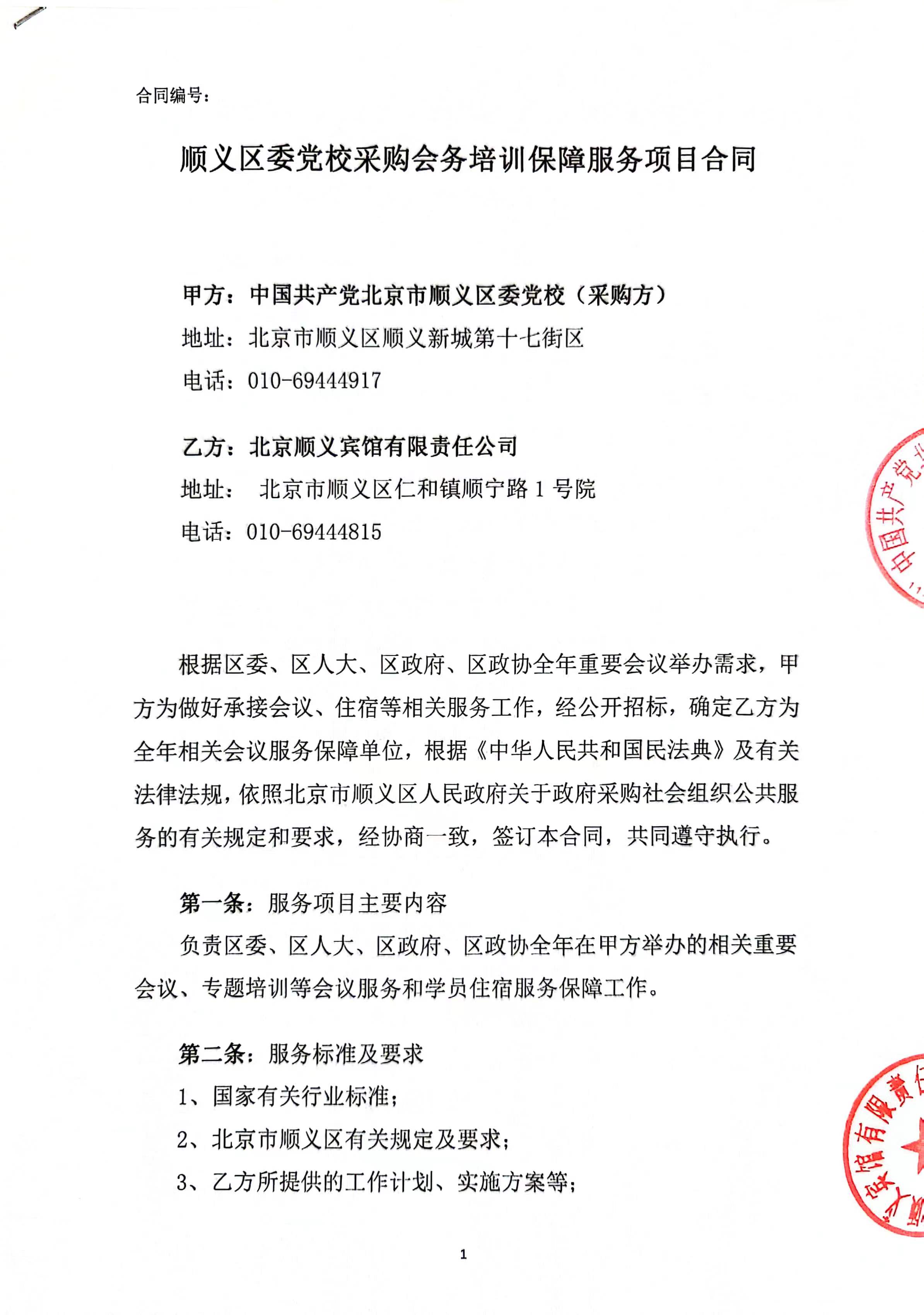 供应商(乙方): 北京顺义宾馆有限责任公司