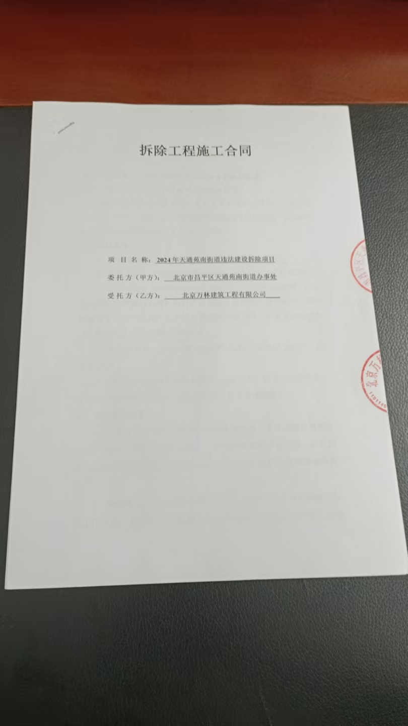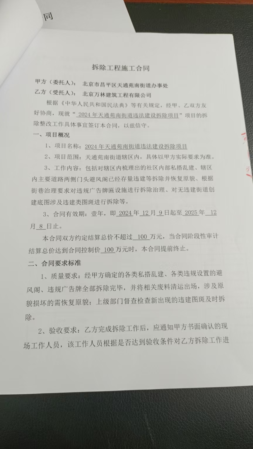 二、合同名称: 2024年天通苑南街道违法建设拆除项目政府采购合同