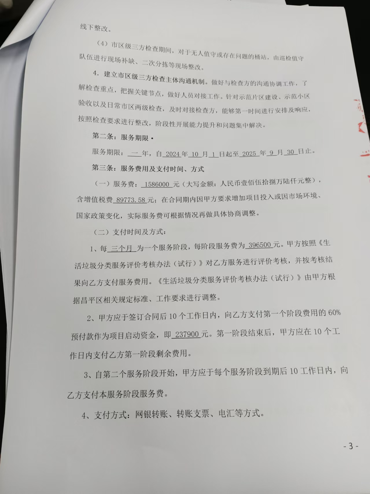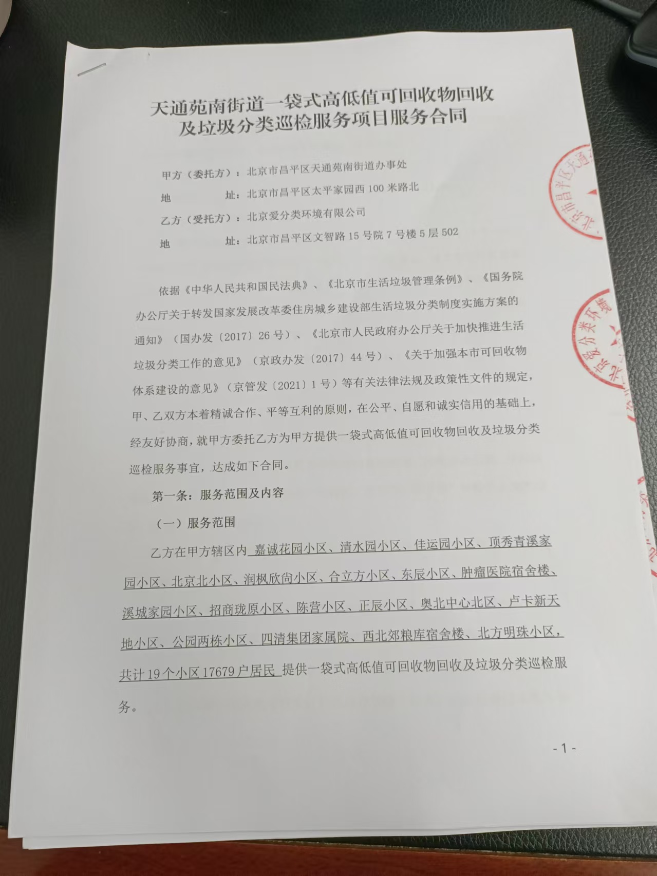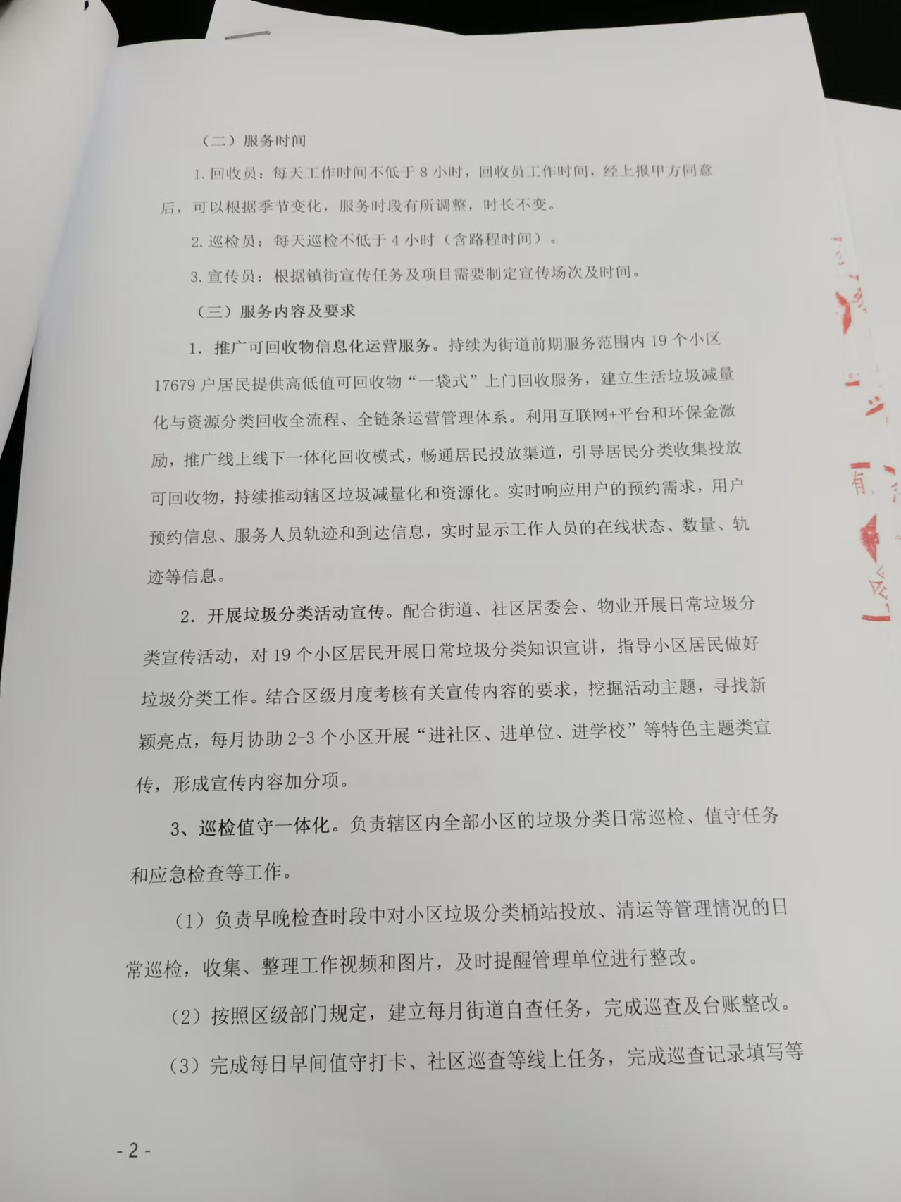 二、合同名称: 天通苑南街道一袋式高低值可回收物回收及垃圾分类巡检服务项目政府采购合同