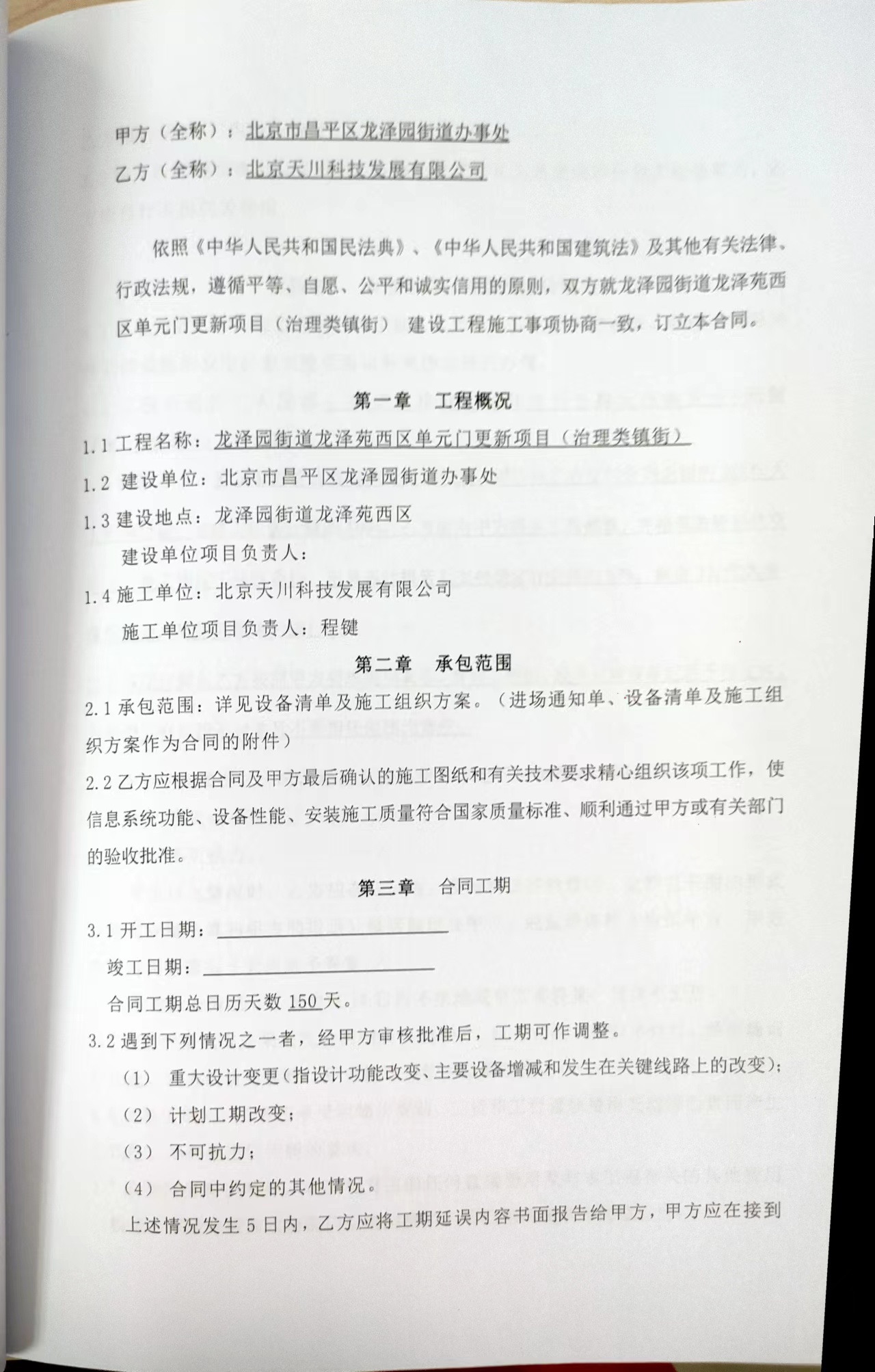 二、合同名称: 龙泽园街道龙泽苑西区单元门更新项目(治理类镇街)政府采购合同