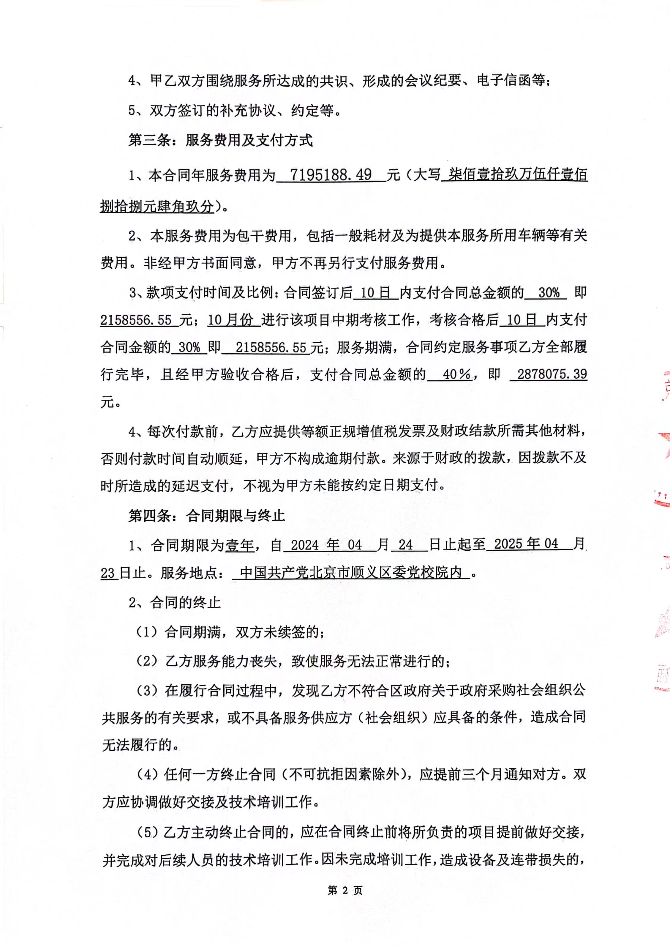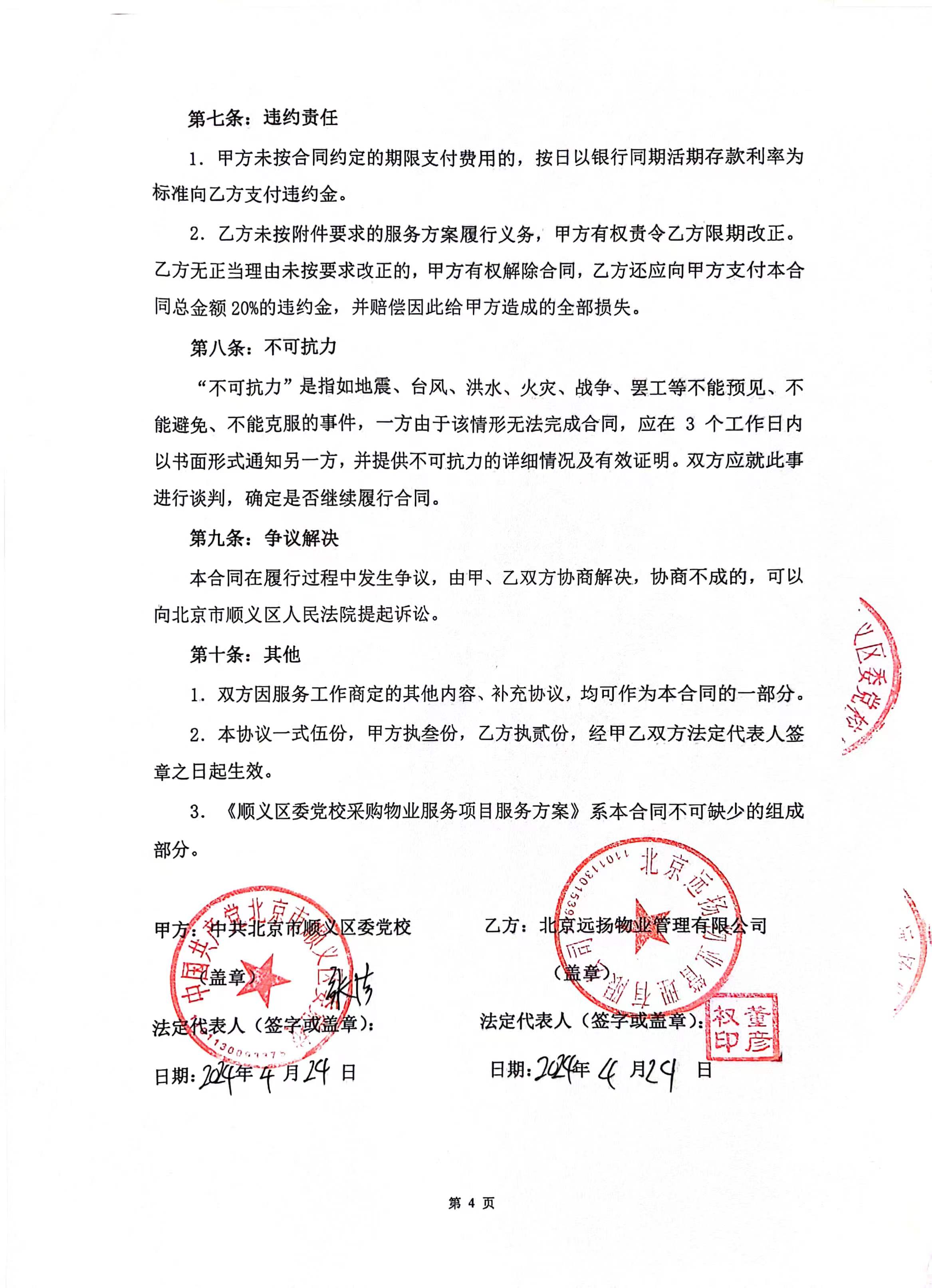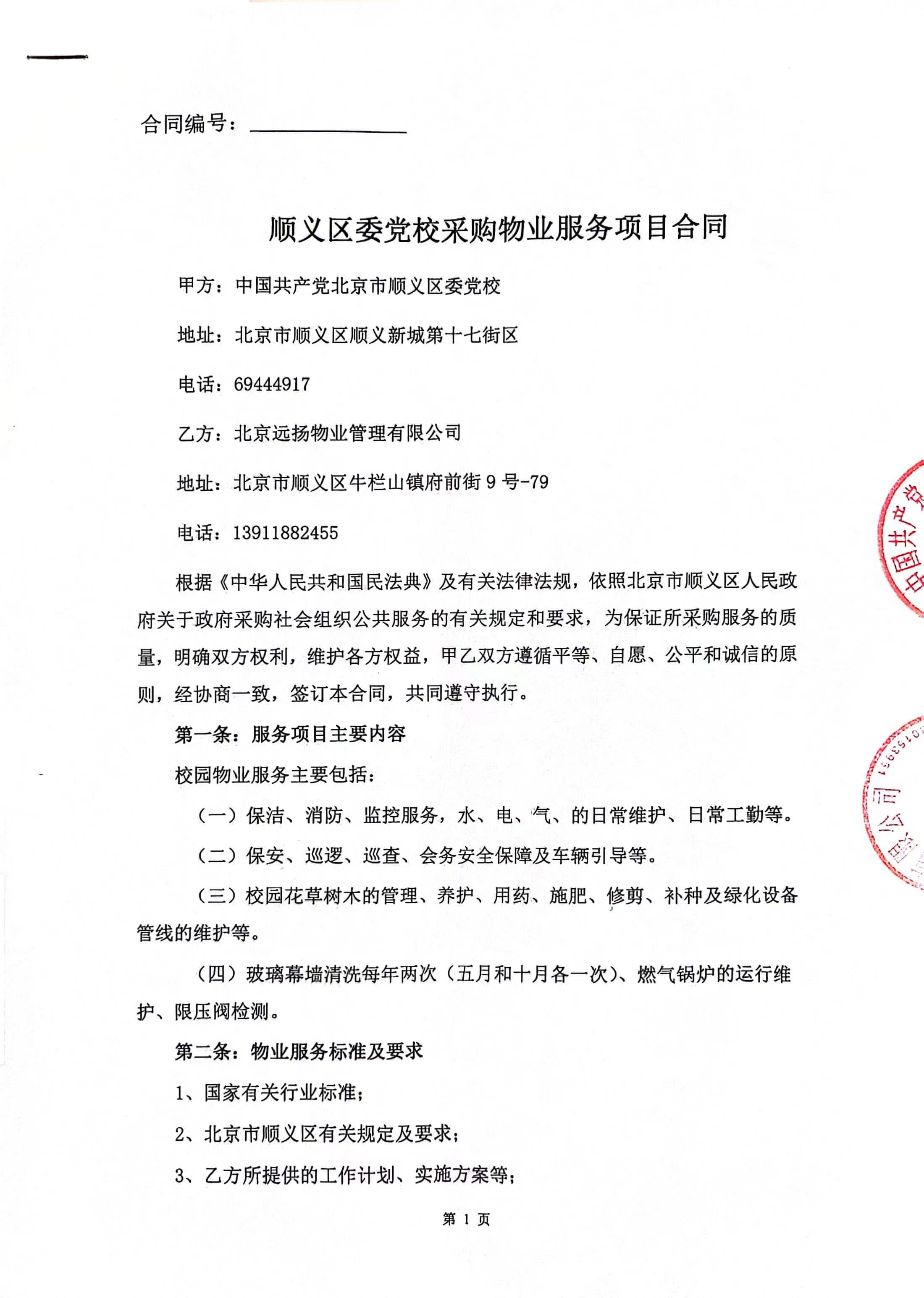 二、合同名称: 顺义区委党校采购物业服务项目合同