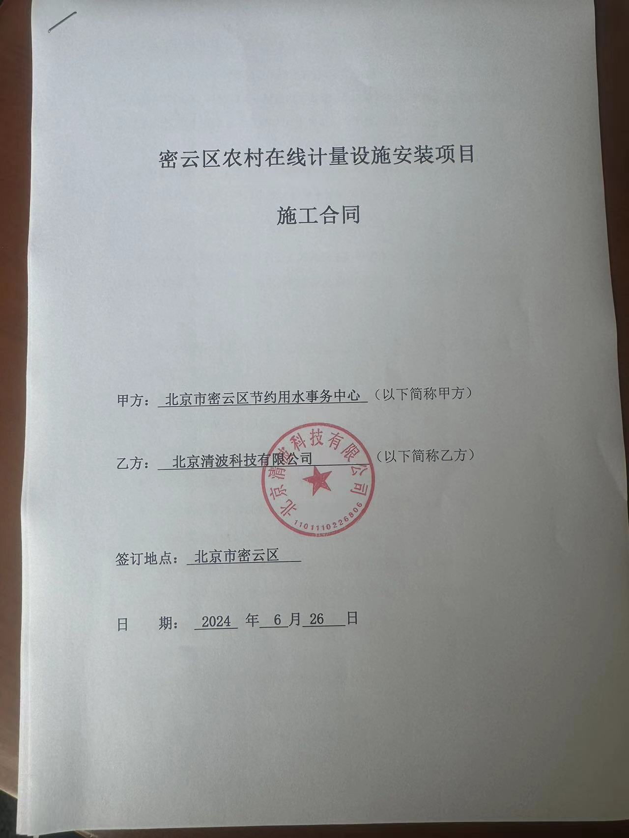 二、合同名称: 密云区农村在线计量设施安装项目施工合同