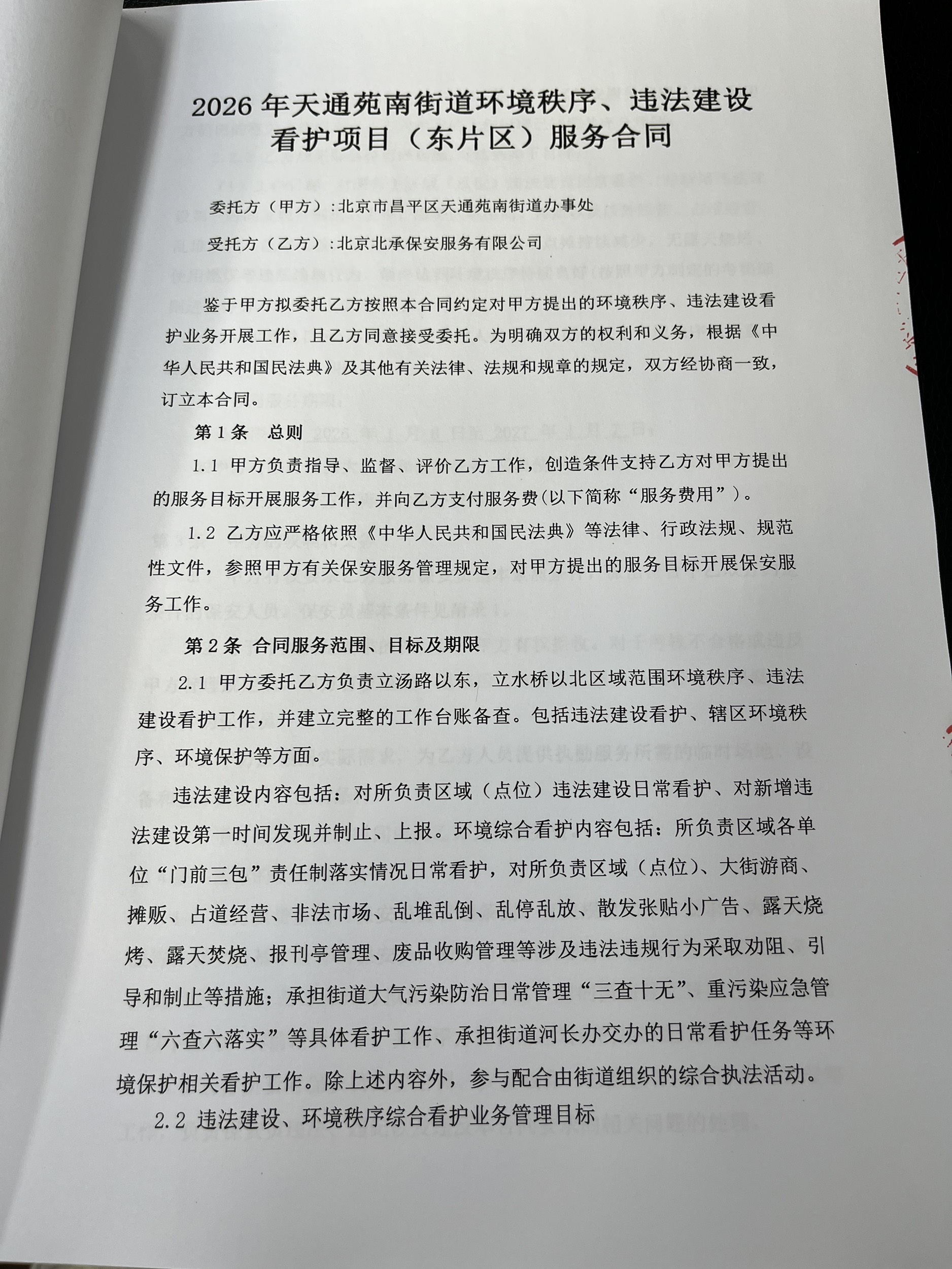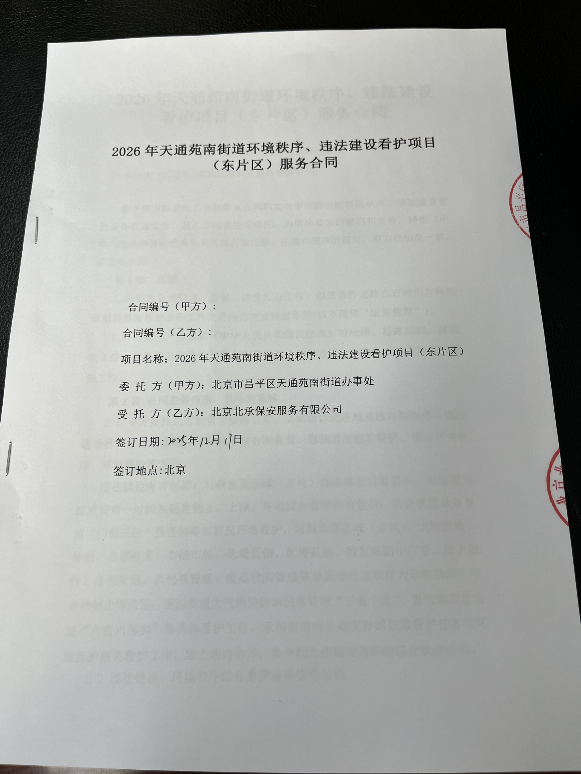 二、合同名称: 2026年天通苑南街道环境秩序、违法建设看护项目(东片区)政府采购合同