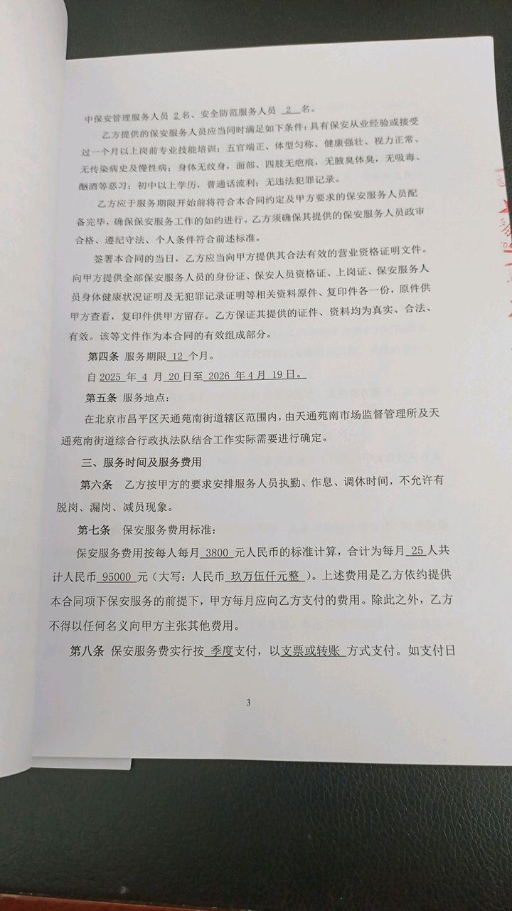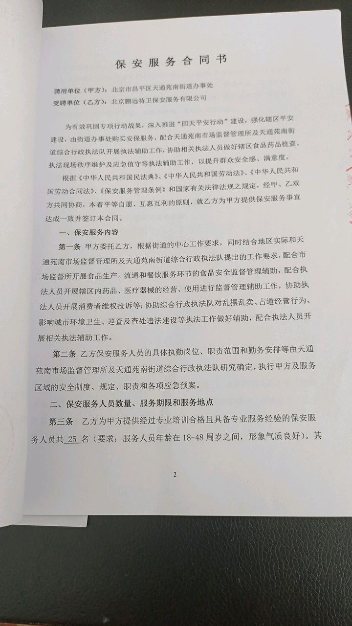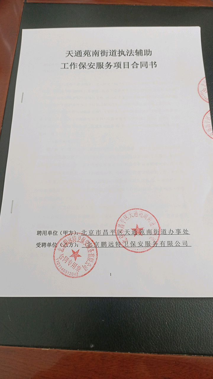 二、合同名称: 天通苑南街道执法辅助工作保安服务项目政府采购合同