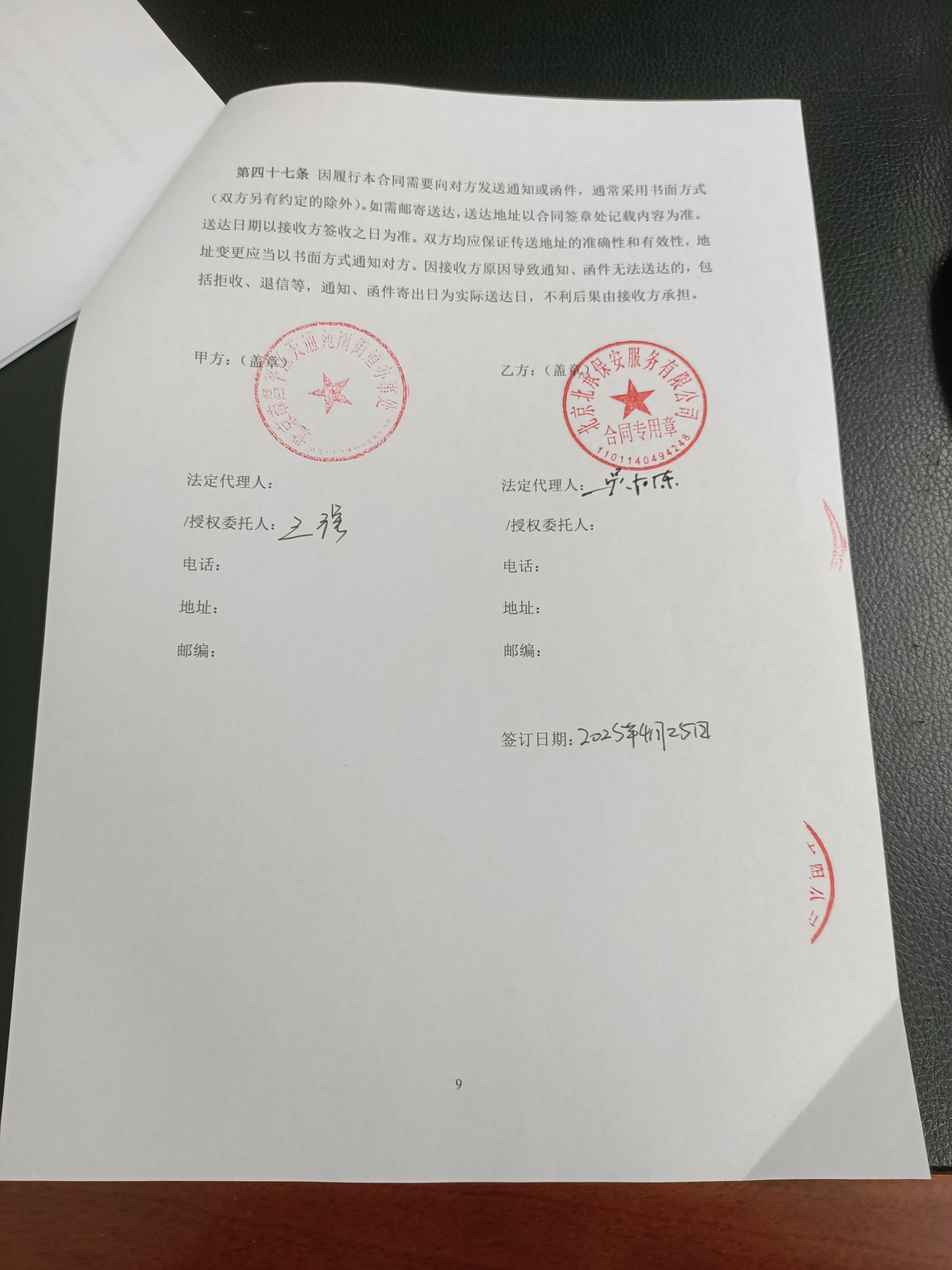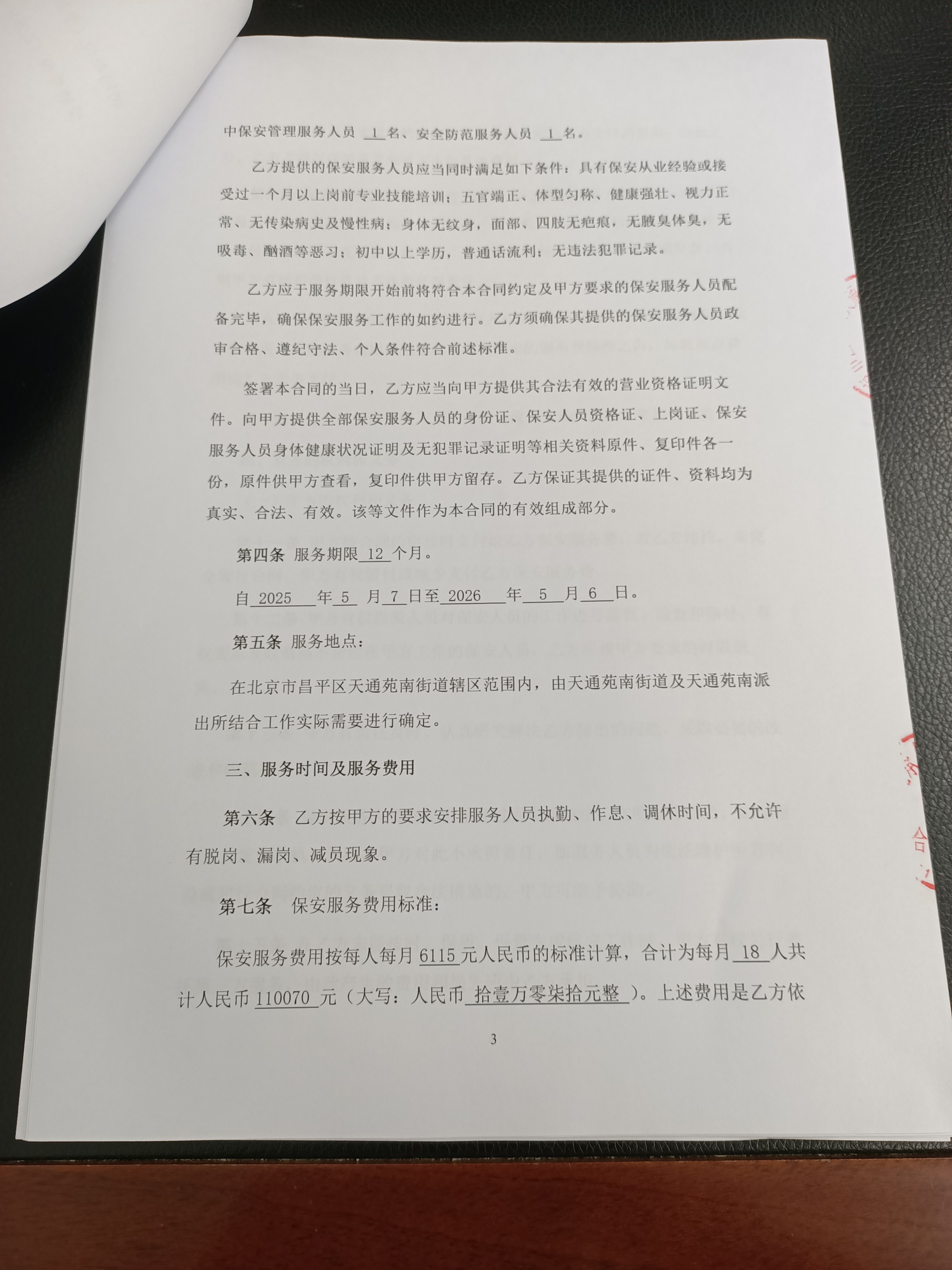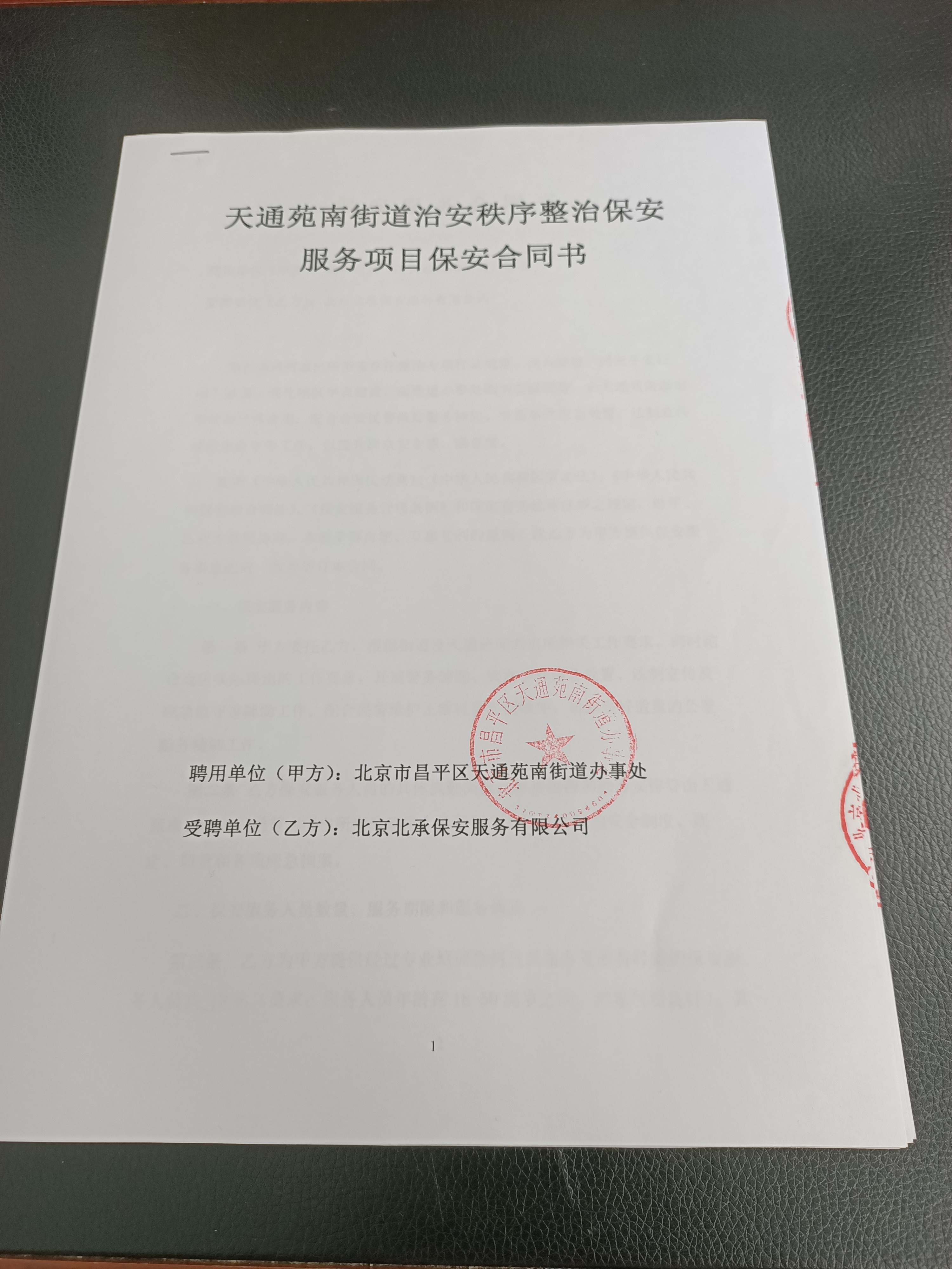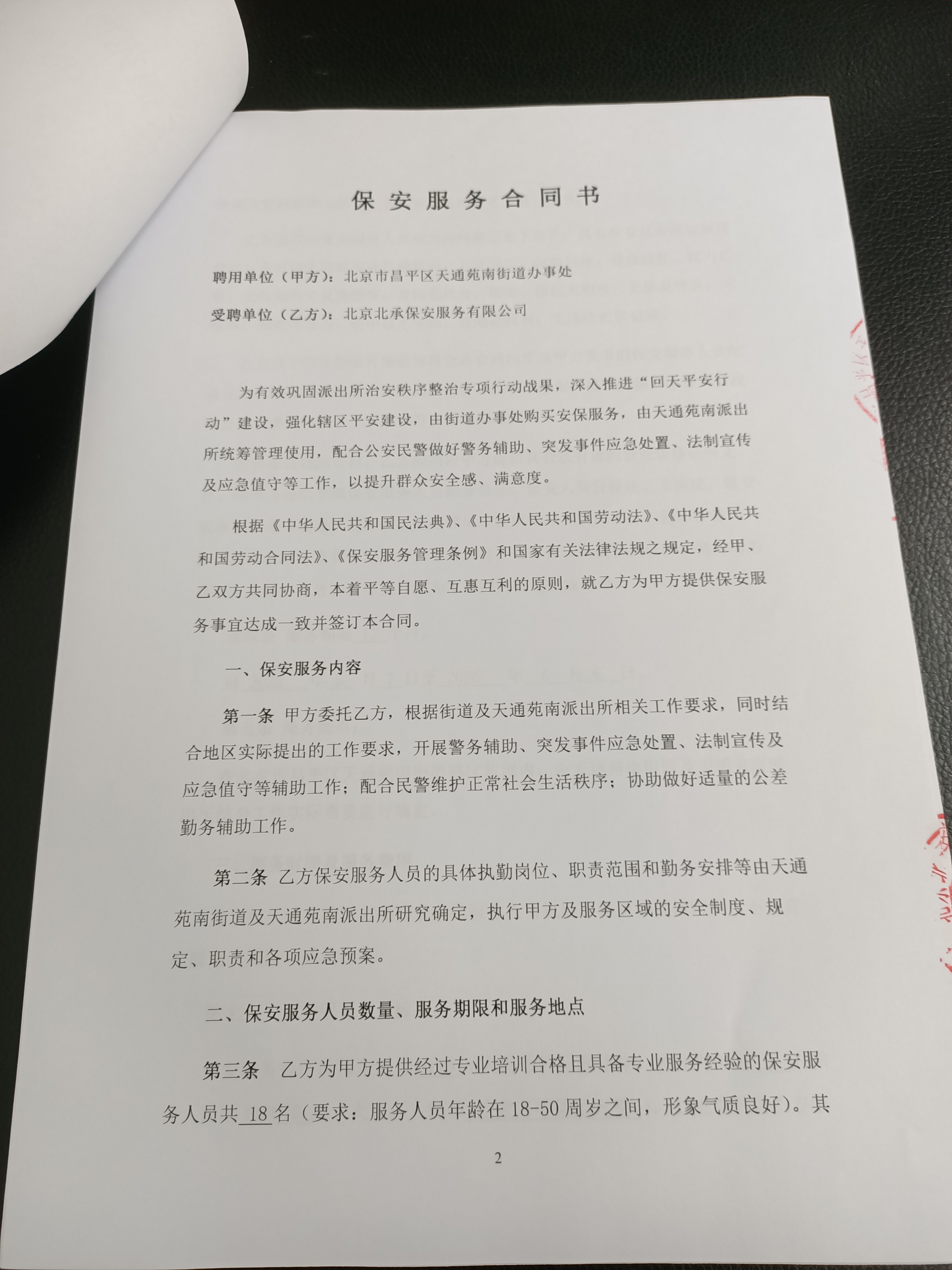 二、合同名称: 天通苑南街道治安秩序整治保安服务项目保安合同书