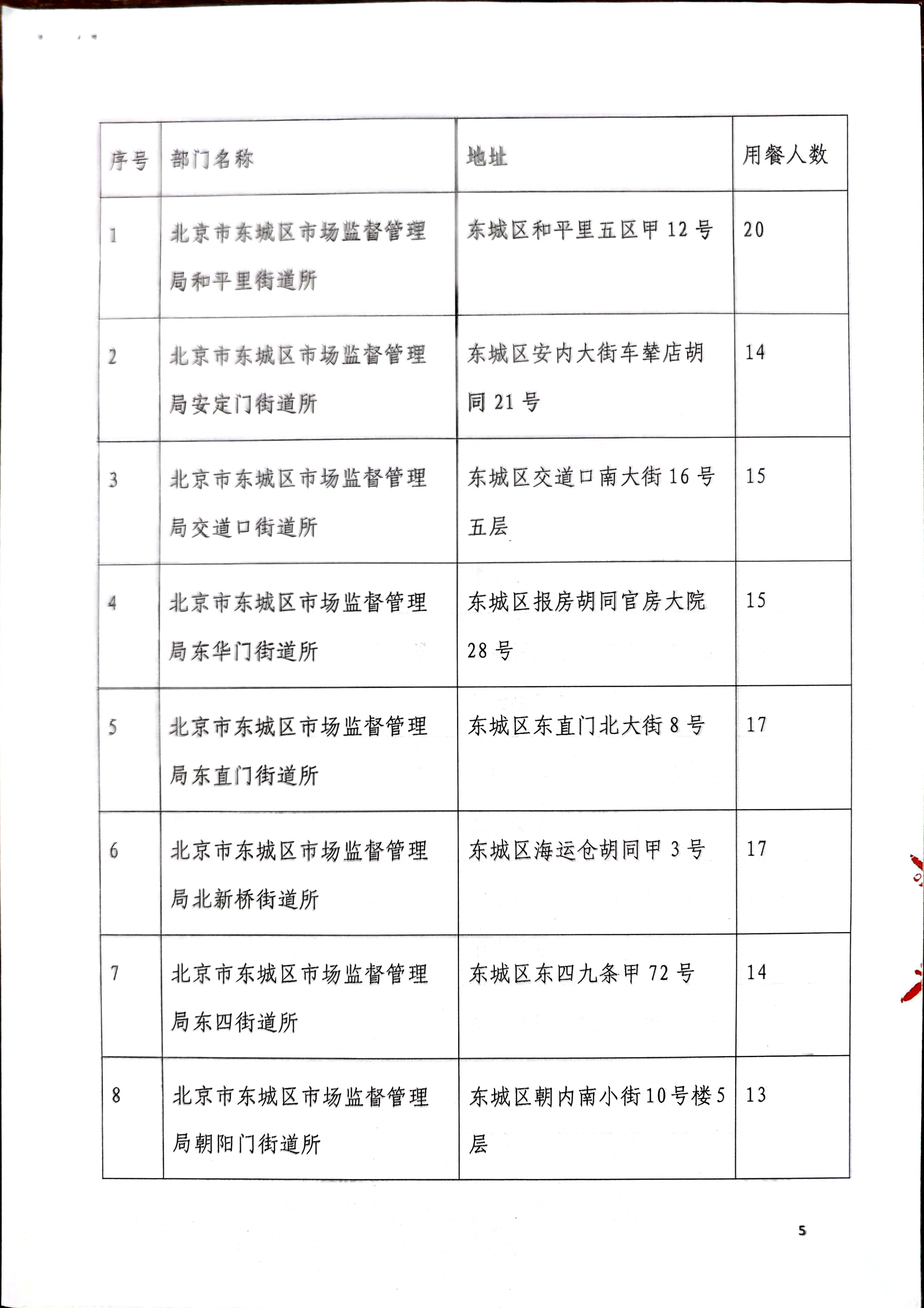 四、项目名称: 东城区市场监督管理局食堂经费