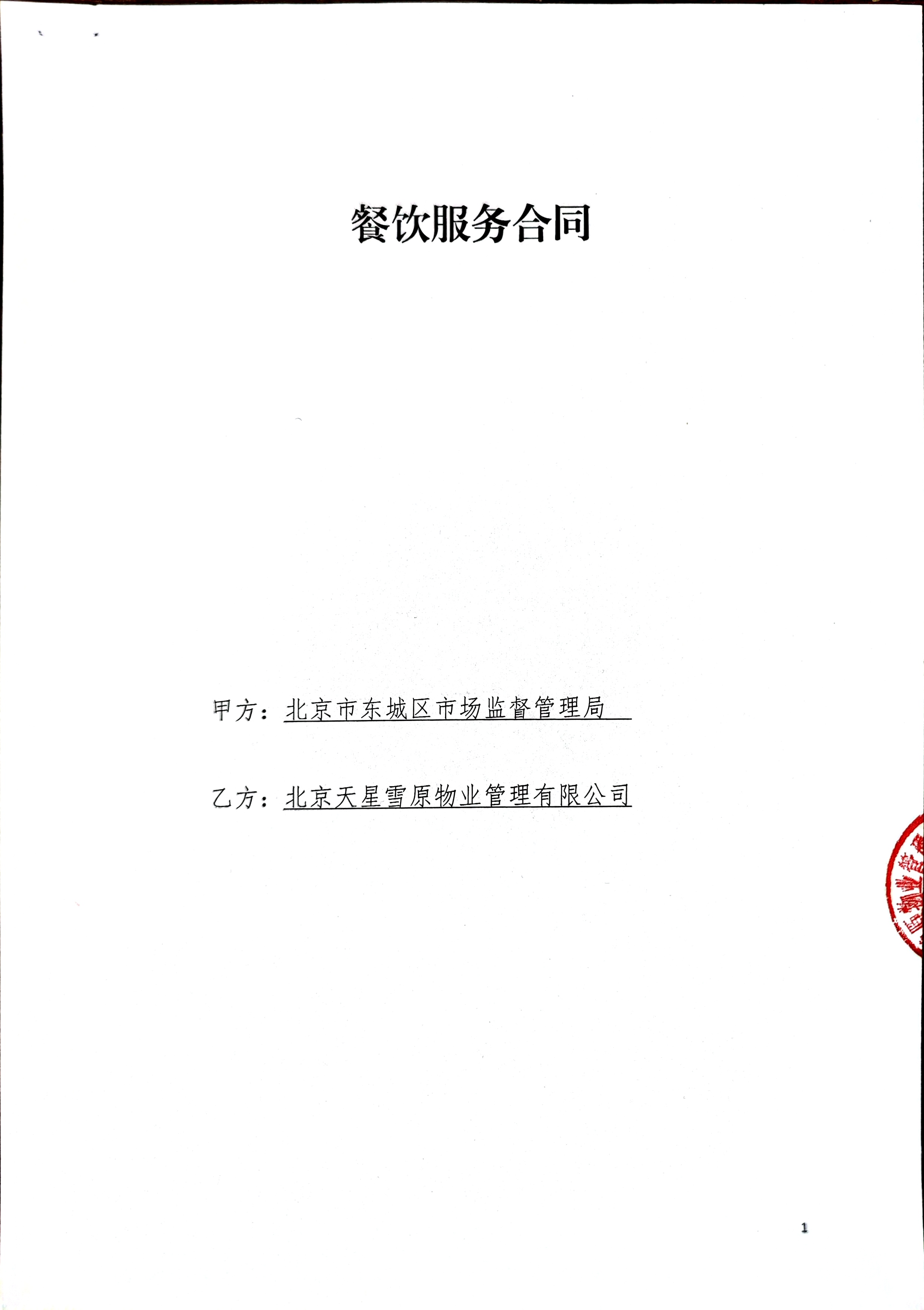 供应商(乙方): 北京天星雪原物业管理有限公司