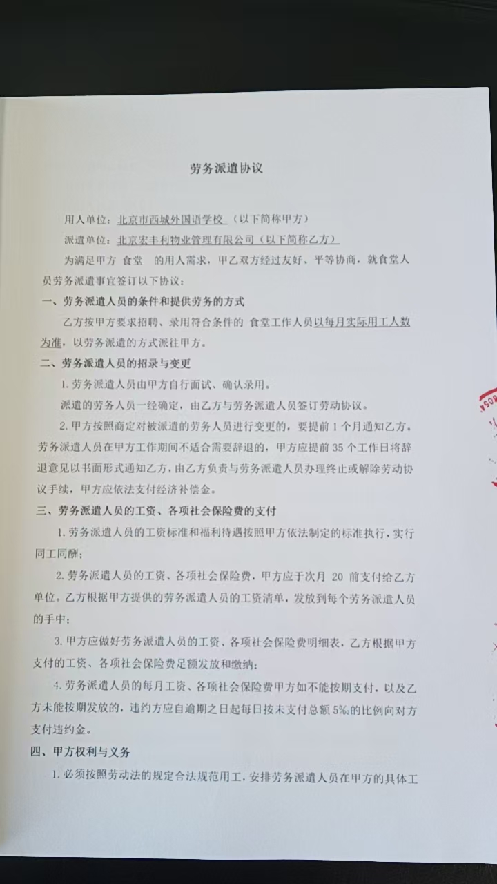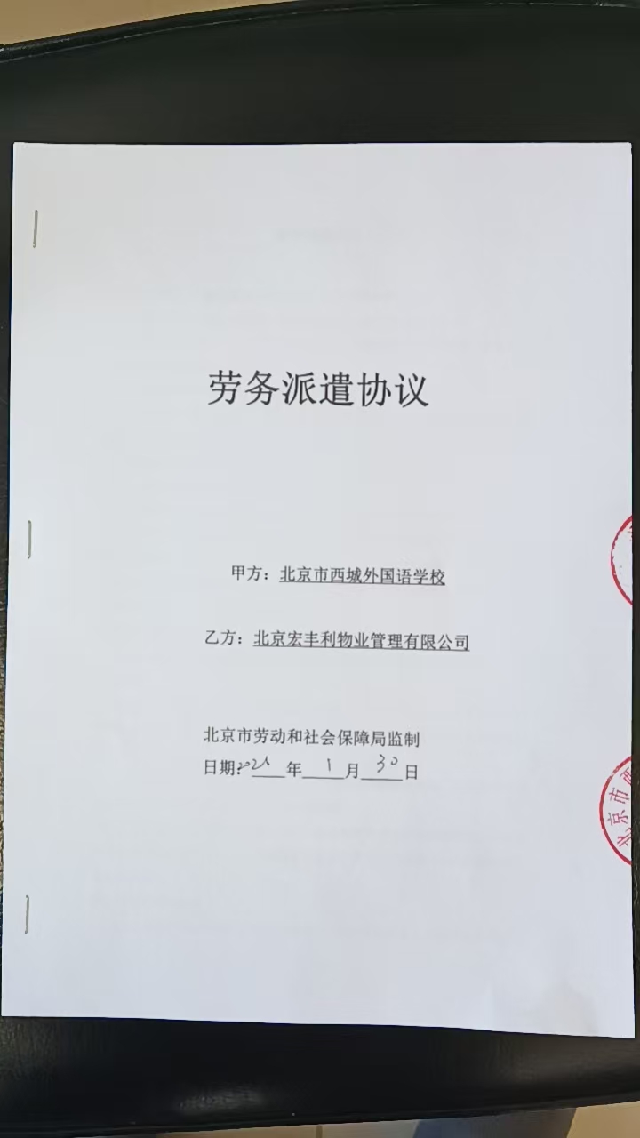 供应商(乙方): 北京宏丰利物业管理有限公司