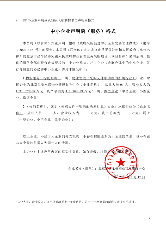 二、项目名称:北京市昌平区沙河镇人民政府物业管理服务采购项目