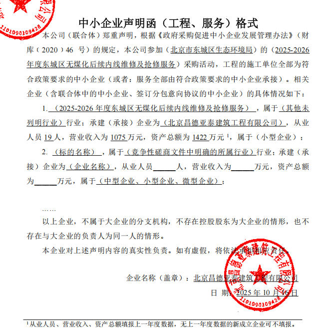 二、项目名称:2025-2026年度东城区无煤化后续内线维修及抢修服务