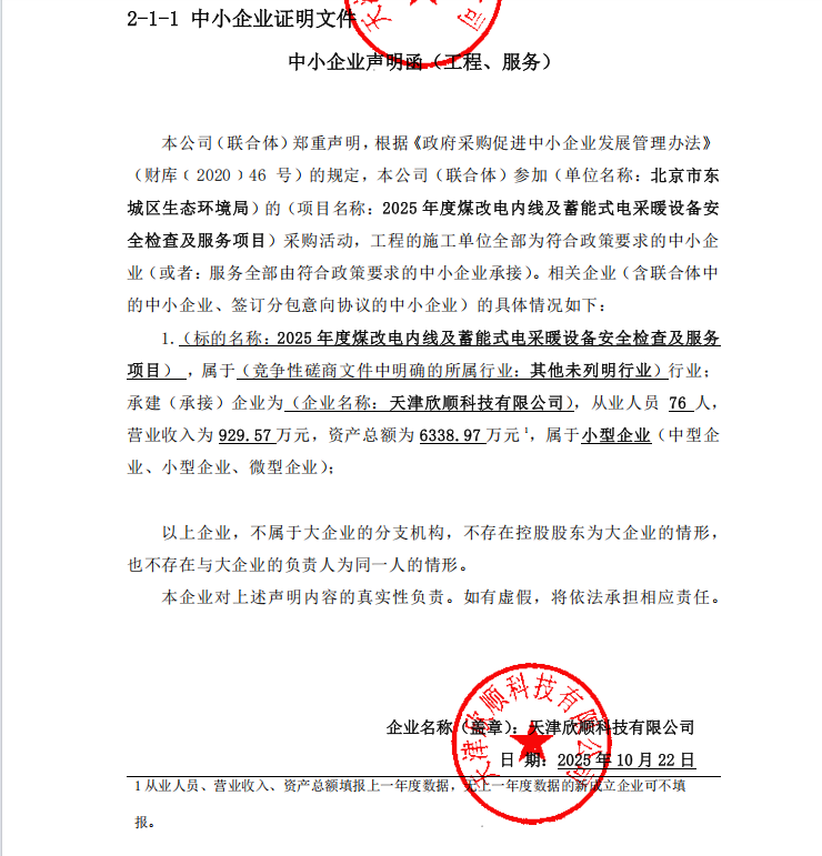 二、项目名称:2025年度煤改电内线及蓄能式电采暖设备安全检查及服务项目