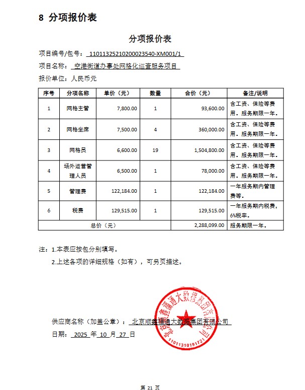 | 北京顺鑫福通大数据集团有限公司 | 1 | 228.8099万元 | 228.8099万元 | 详见磋商文件 |