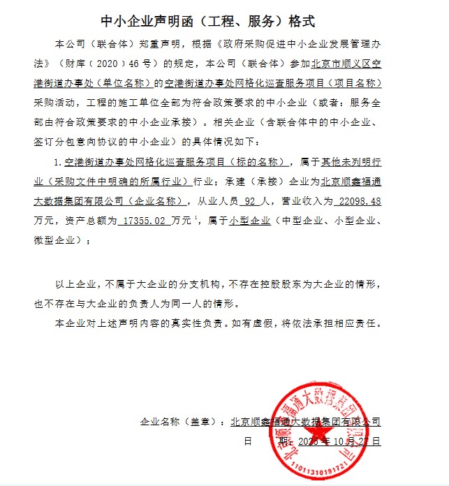 | 北京顺鑫福通大数据集团有限公司 | 北京市顺义区顺沙路东海洪段18号1幢1至3层 | 91110113MA006KNB0H | 228.8099 万元 | 评审总得分(综合评分法): 97.33 分 |