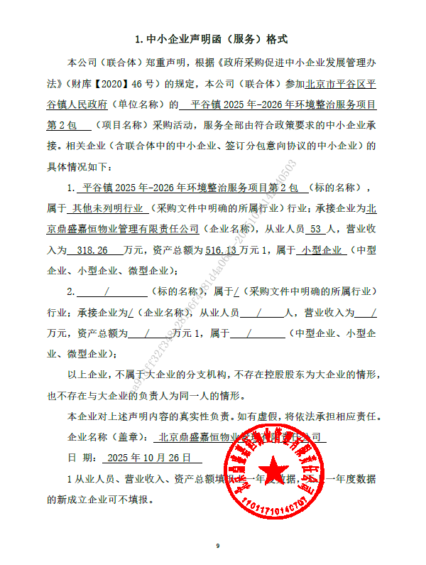 | 北京鼎盛嘉恒物业管理有限责任公司 | 1 | 53.76万元 | 53.76万元 | 详见采购文件 |