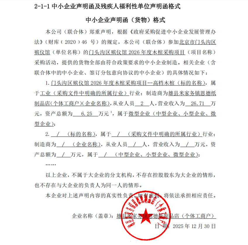 门头沟区殡仪馆2026年度木棺采购项目--高档木棺 |