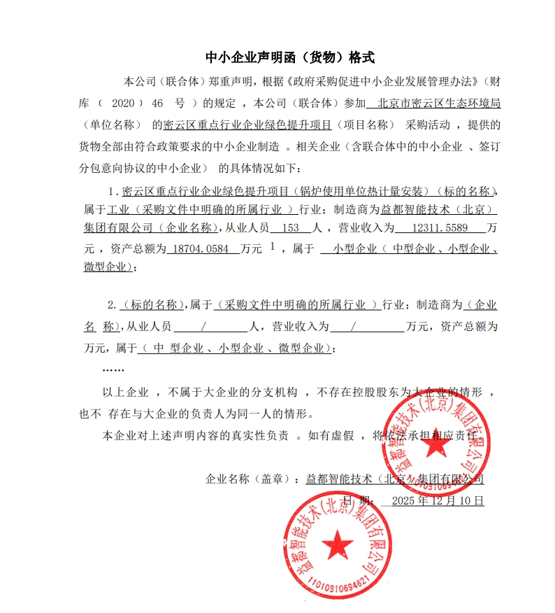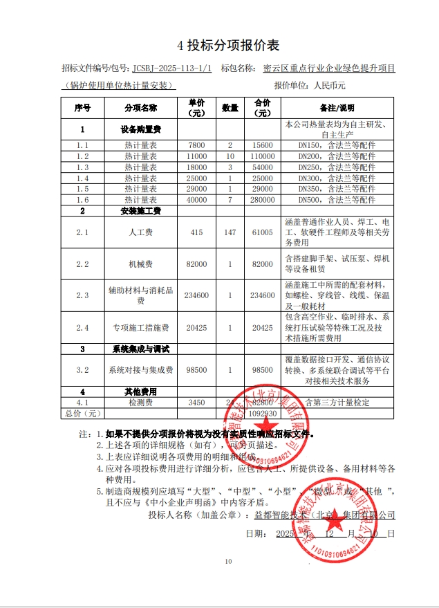 | 益都智能技术(北京)集团有限公司 | 热计量表 | 详见附件 | 1 | 109.293万元 | 109.293万元 | 详见招标文件 |