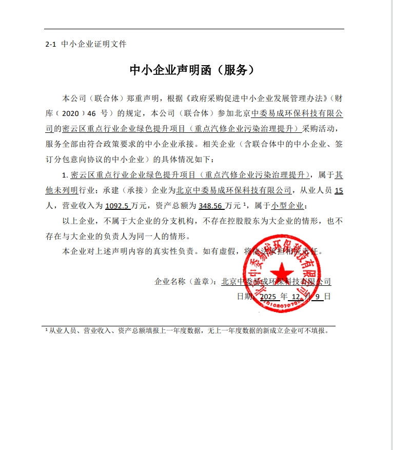 密云区重点行业企业绿色提升项目(重点企业提绿技术服务) |