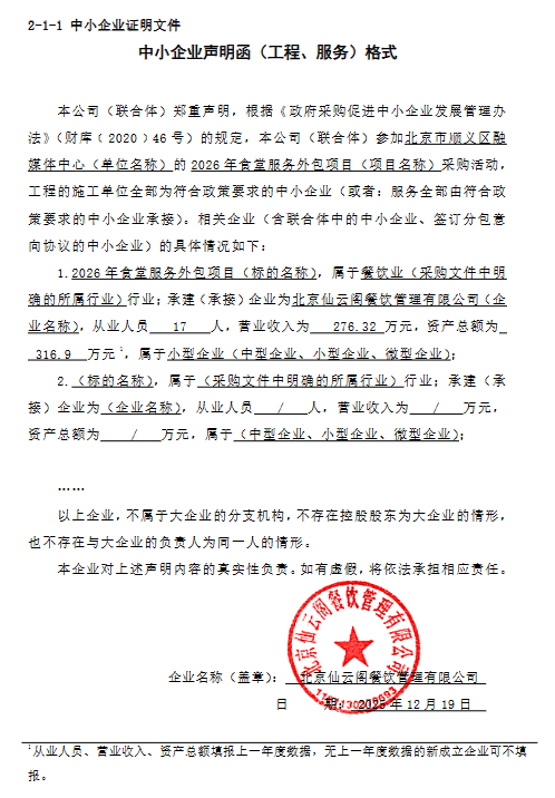 中标成交供应商名称:北京仙云阁餐饮管理有限公司