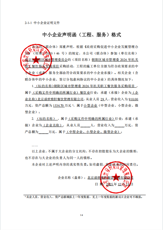 二、项目名称:朝阳区城市管理委2026年机关职工餐饮服务采购项目