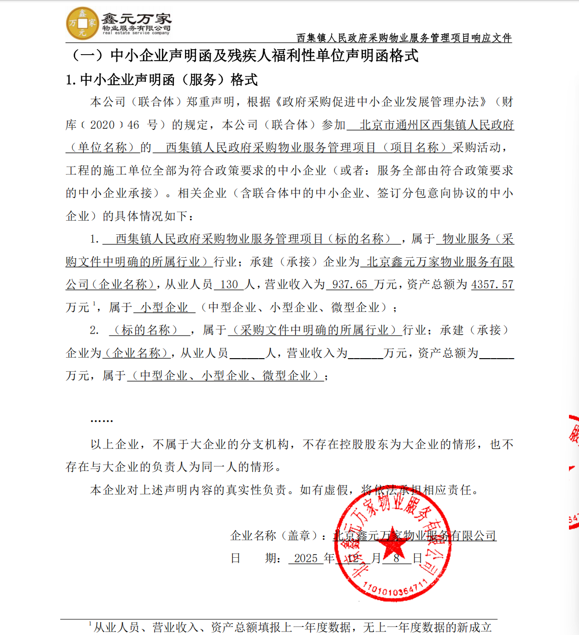 二、项目名称:西集镇人民政府物业服务管理采购项目