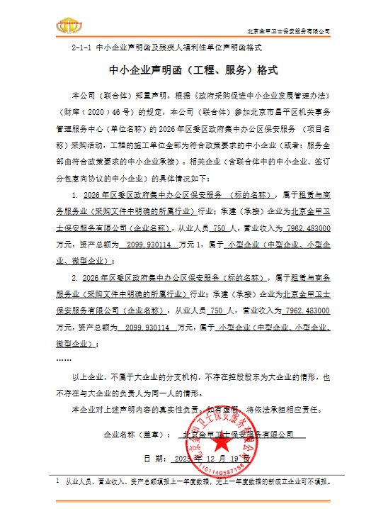中标成交供应商名称:北京金甲卫士保安服务有限公司