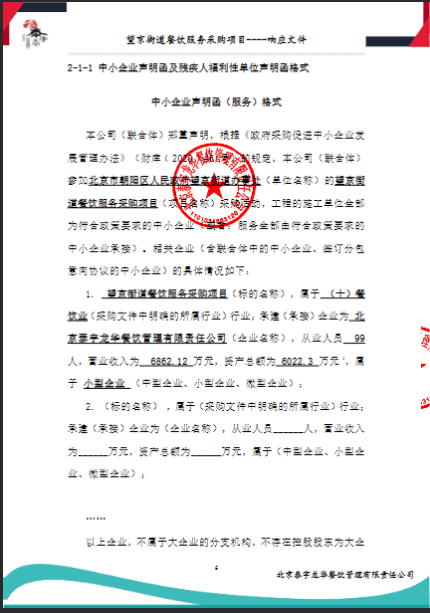 二、项目名称:望京街道餐饮服务采购项目