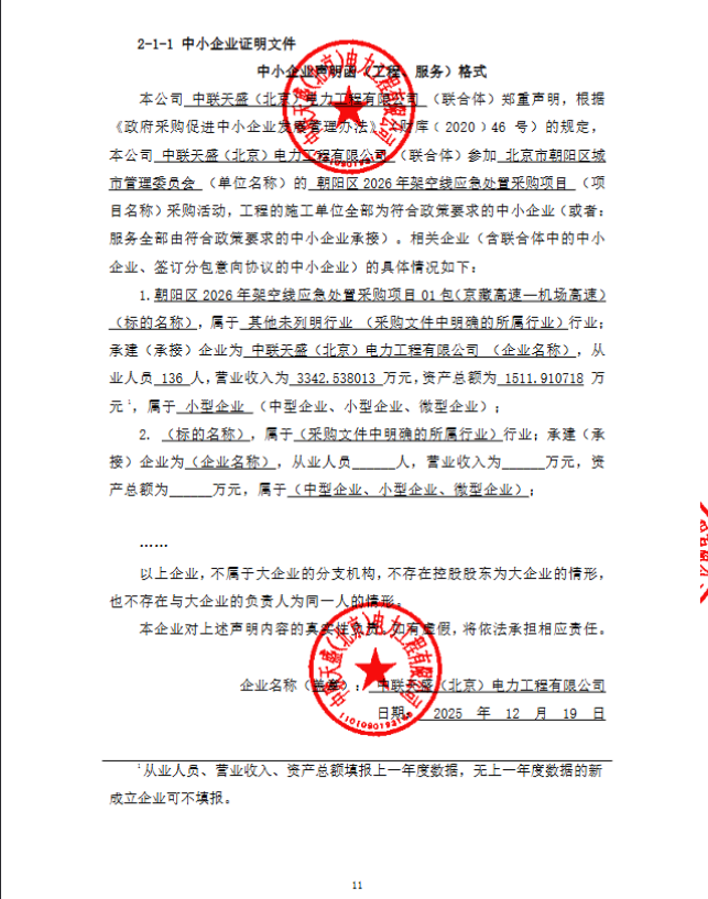 二、项目名称:朝阳区2026年架空线应急处置采购项目