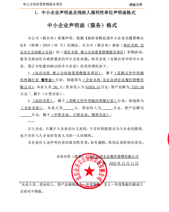 中标成交供应商名称:北京众泽宏达餐饮管理有限公司