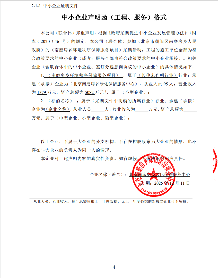 二、项目名称:南磨房乡环境秩序保障服务项目
