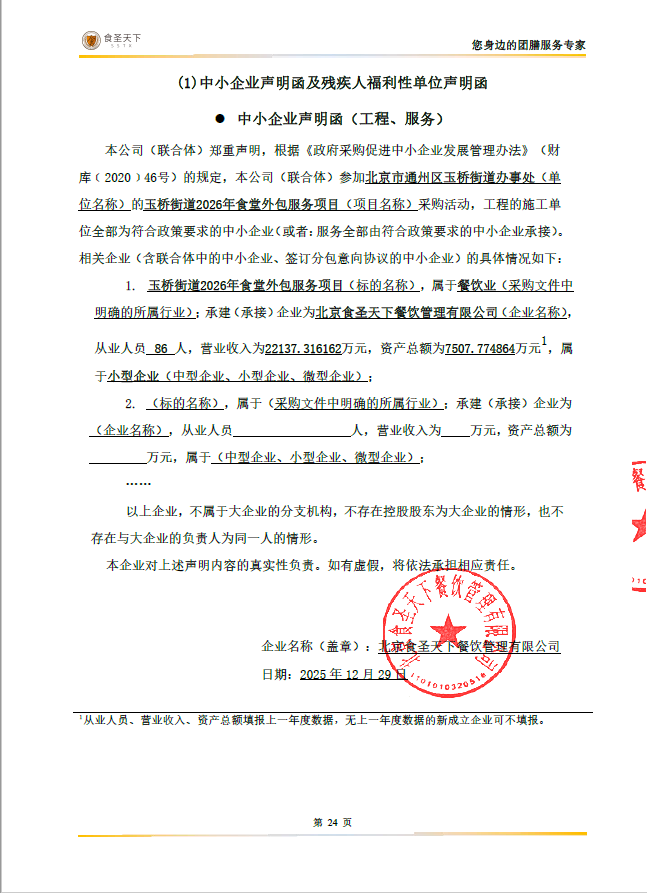 中标成交供应商名称:北京食圣天下餐饮管理有限公司