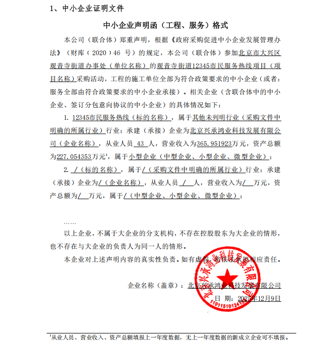 | 北京兴承鸿业科技发展有限公司 | 1 | 215.5万元 | 215.5万元 | 采购需求:服务内容为热线系统值守、市民热线案件案件回复、市民热线案件回访、市民热线案件督办、市民热线案件挂账、市民热线案件不计入考核等工作,并配合镇街做好为民服务工作。合同履行期限:自2026年1月1日起至2026年12月31日止。 |