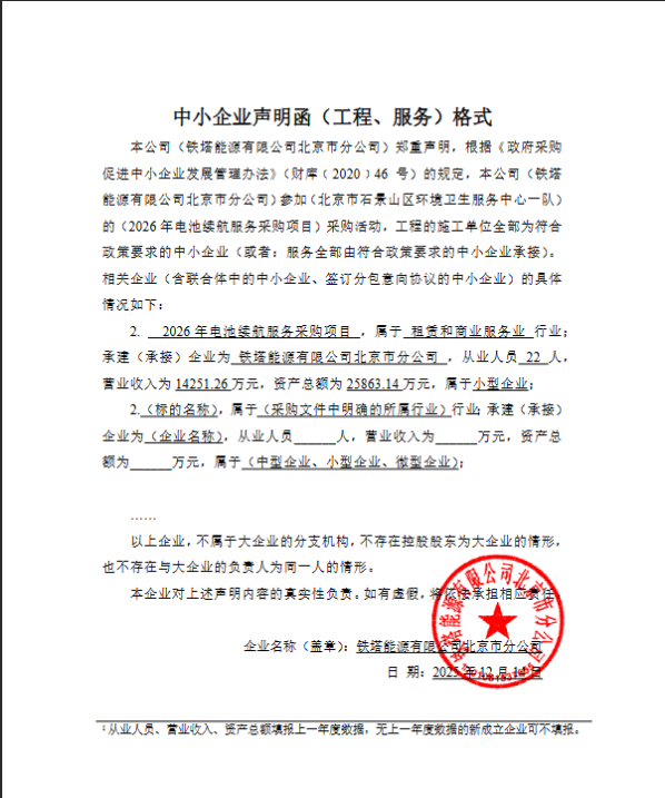 | 铁塔能源有限公司北京市分公司 | 1 | 147.5万元 | 147.5万元 | 对单位下辖 9 个保洁管理站,现有作业电动车共计 538 台,换电服务。需求详见招标文件第五章 采购需求 |