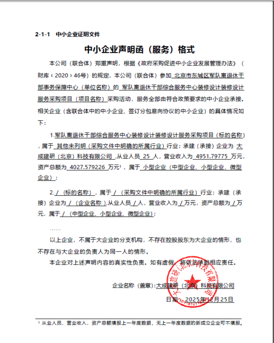 | 大成建研(北京)科技有限公司 | 1 | 147.9万元 | 147.9万元 | 针对项目装修内容须提供全过程设计服务。服务期限:从签订合同至本项目工程竣工验收结束。 |