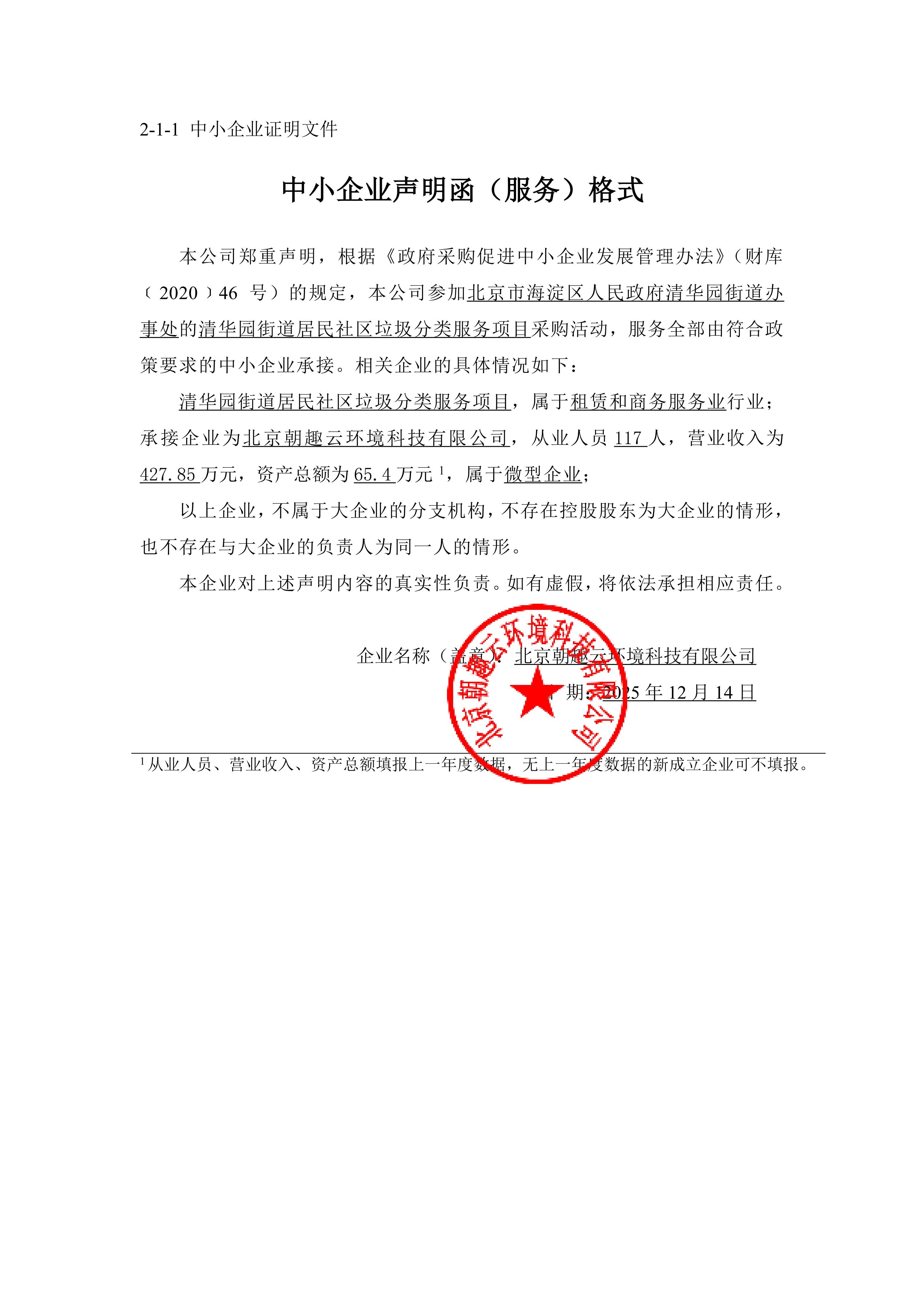 二、项目名称:清华园街道居民社区垃圾分类服务项目