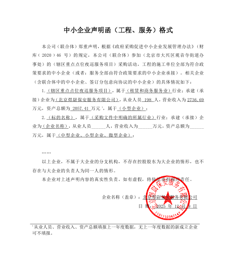 | 北京煜尉保安服务有限公司 | 1 | 147万元 | 147万元 | 详见招标文件 |