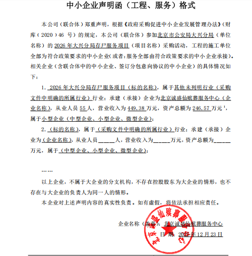 | 北京诚盛仙殡葬服务中心 | 1 | 398.55万元 | 398.55万元 | 1、公安机关涉案尸体的现场收敛、包裹、搬抬、运输、存放、检验、处理及无法查找到尸源尸体的火化服务及相关服务(包括包裹材料、搬抬、转运、人工、火化费等) 2、短期内无法处置的170具尸体的存放、保管、人工服务及火化服务等 |