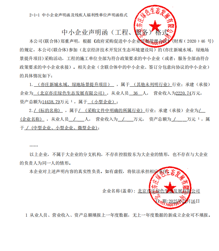 中标成交供应商名称:北京亦庄绿色生态发展有限公司