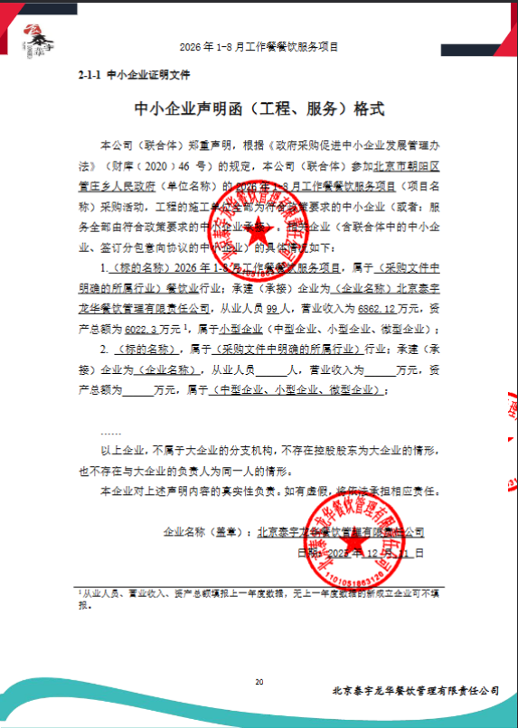 中标成交供应商名称:北京泰宇龙华餐饮管理有限责任公司