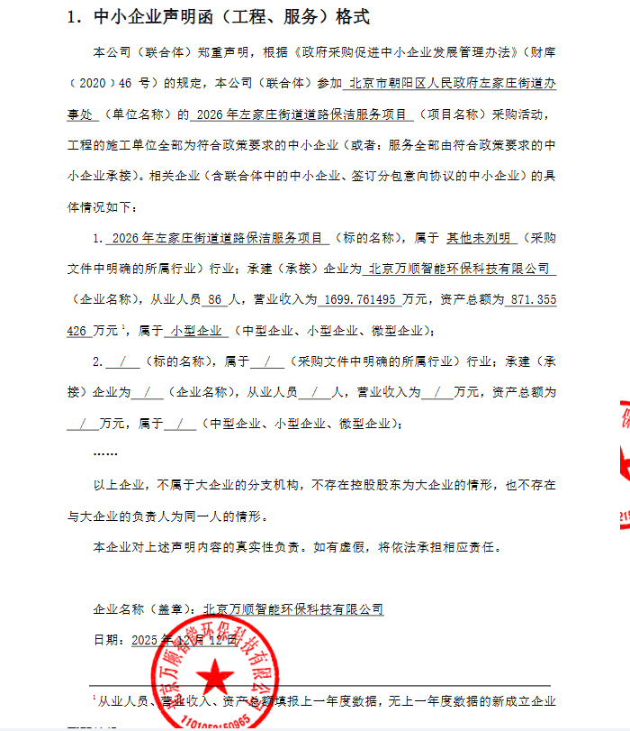 | 北京万顺智能环保科技有限公司 | 1 | 316.9278万元 | 316.9278万元 | 详见磋商文件 |