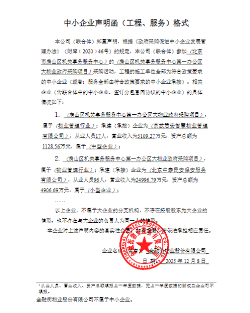 二、项目名称:房山区机关事务服务中心第一办公区大物业政府采购项目