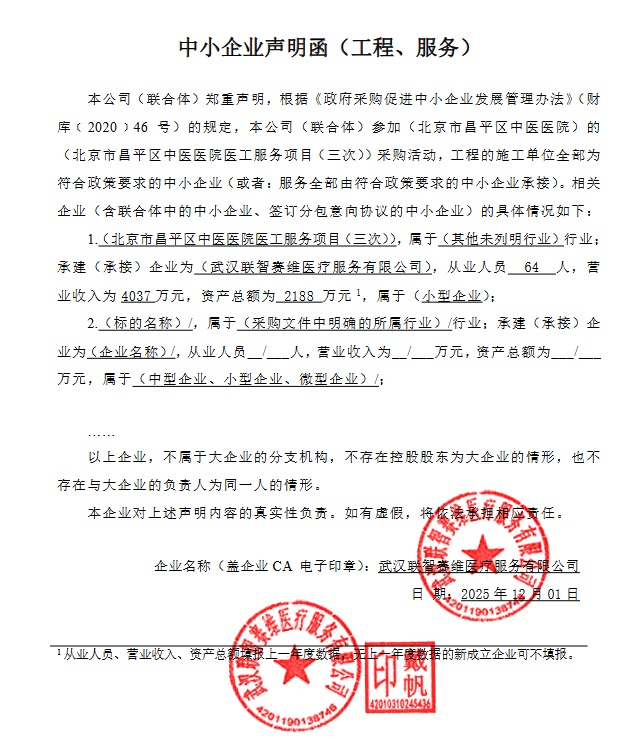 2、项目名称:北京市昌平区中医医院医工服务项目(三次)