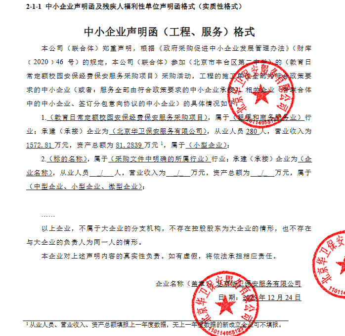 | 北京华卫保安服务有限公司 | 北京市丰台区长辛店杜家坎4号31号楼二层201 | 91110114MA01XTDR0J | 186.7392 万元 | 评审总得分(综合评分法): 95.8 分 |