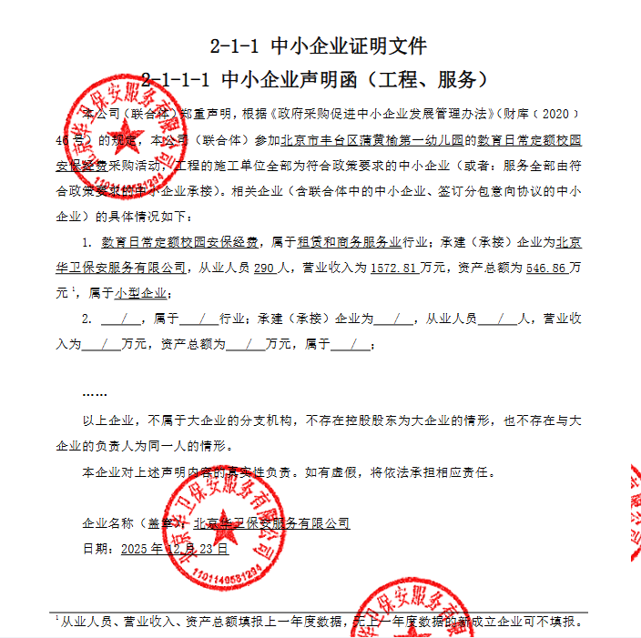 | 北京华卫保安服务有限公司 | 北京市丰台区长辛店杜家坎4号31号楼二层201 | 91110114MA01XTDR0J | 140.0544 万元 | 评审总得分(综合评分法): 91.4 分 |