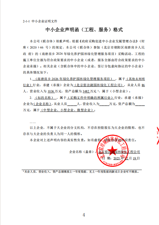 名称:南磨房乡2026年绿化养护园林绿化管理服务项目
