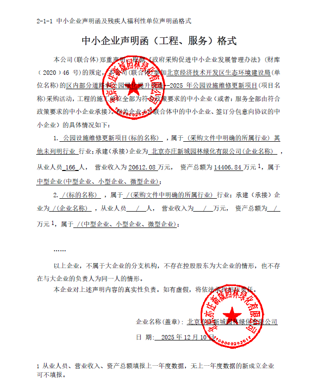 | 北京亦庄新城园林绿化有限公司 | 北京市北京经济技术开发区博兴八路15号三层312号 | 91110302600037122N | 431.325361 万元 | 评审总得分(综合评分法): 91.8 分 |
